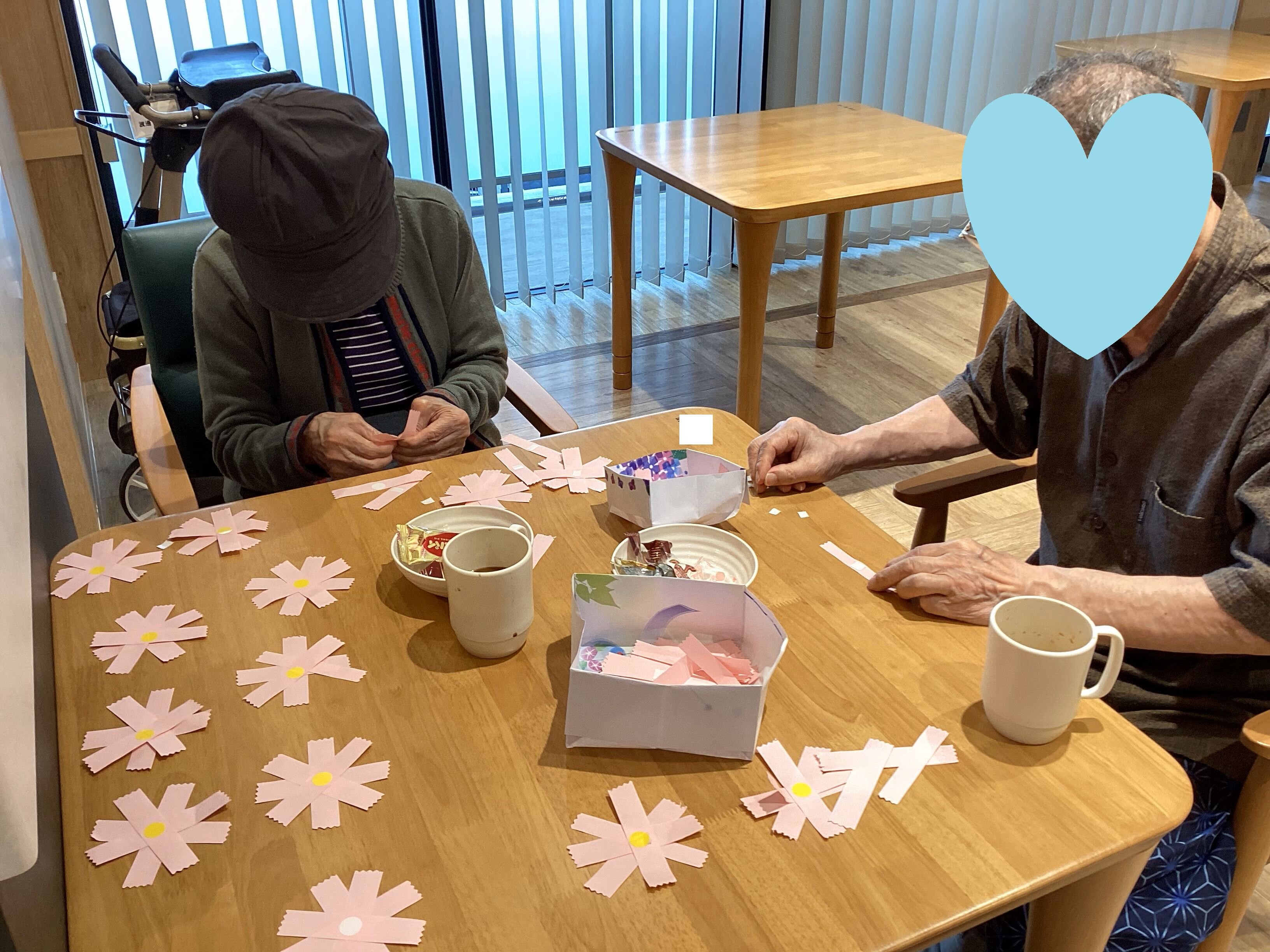 9月に飾るコスモスを一緒に作って下さいました!