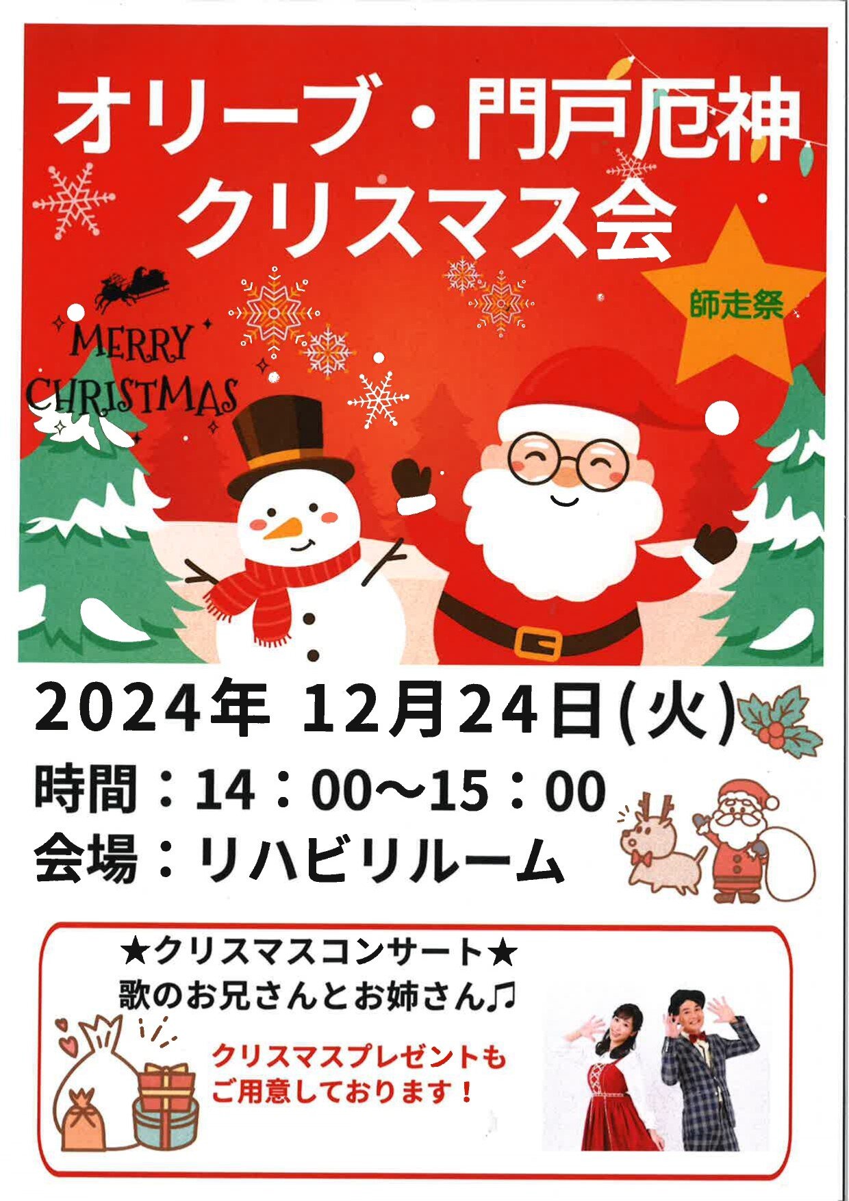 先日の師走祭クリスマス会のご様子をお知らせいたします!