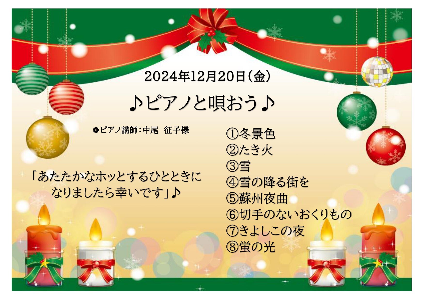 今回は中尾先生のピアノと歌おう音楽会のお知らせをいたします!