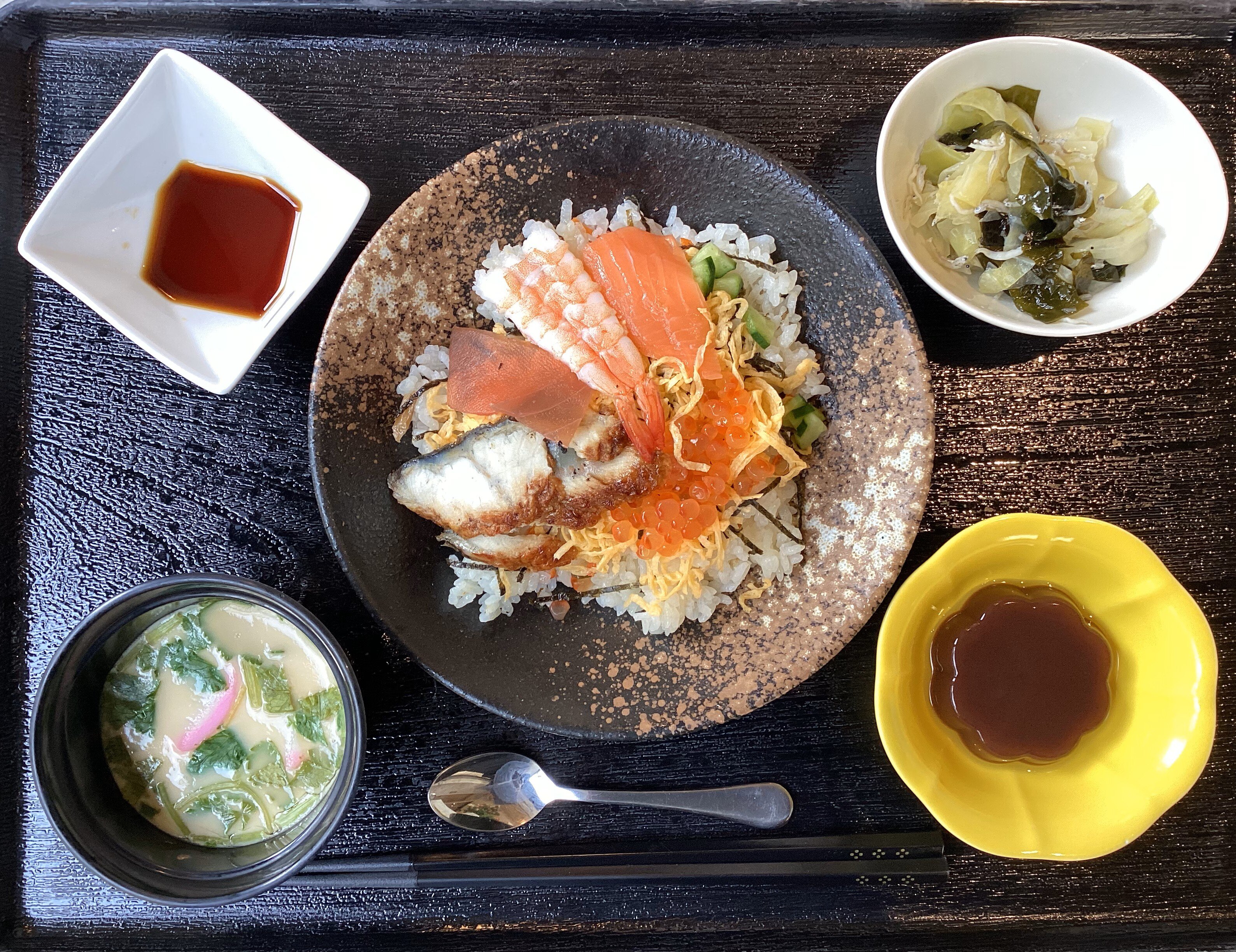 海鮮ちらしはお刺身やいくらがたっぷりのっていて、久しぶりの茶碗蒸しやようかんも