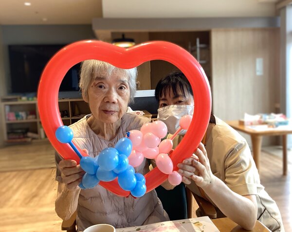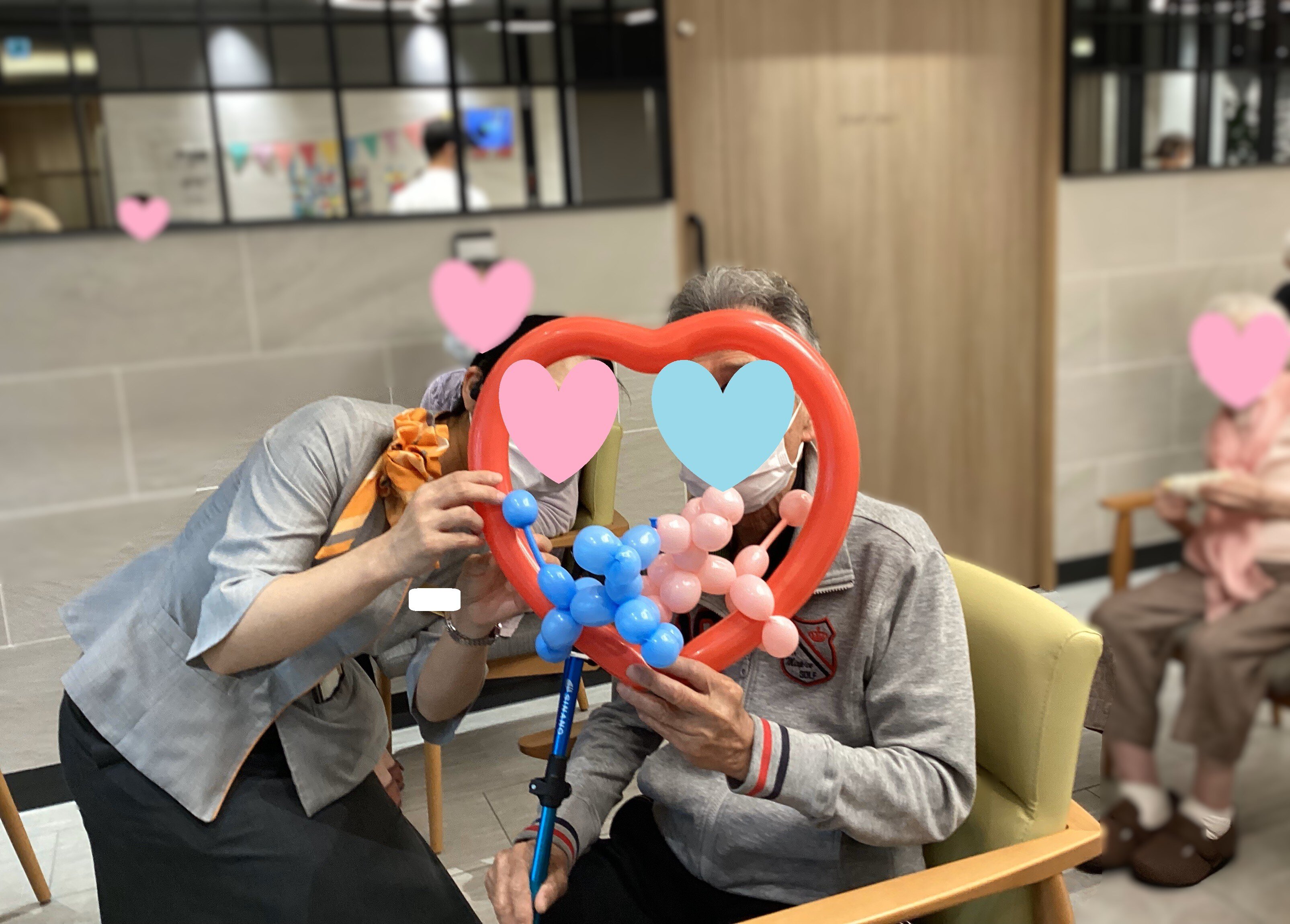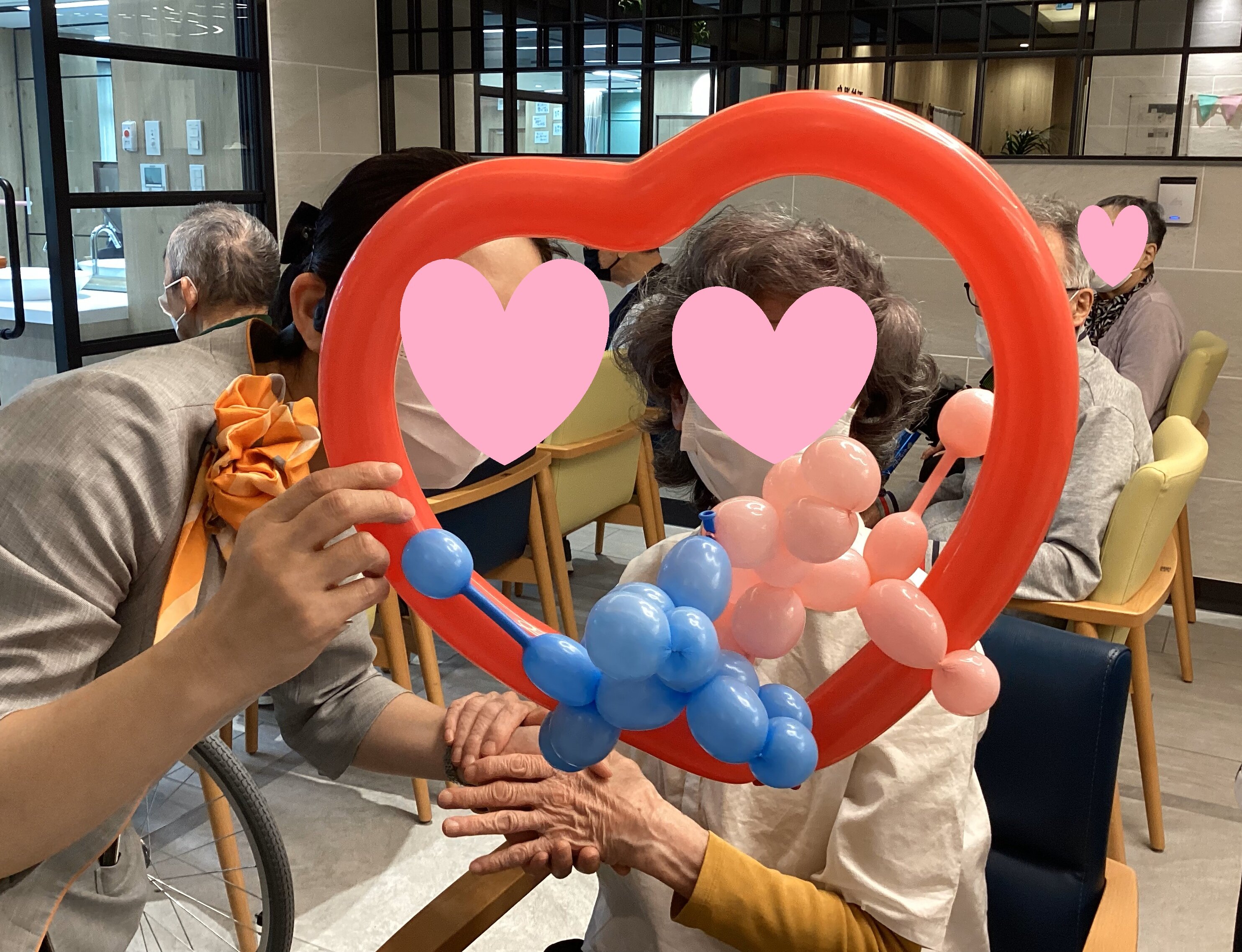 バルーンアートで作っていただいたハートと一緒に撮影♡