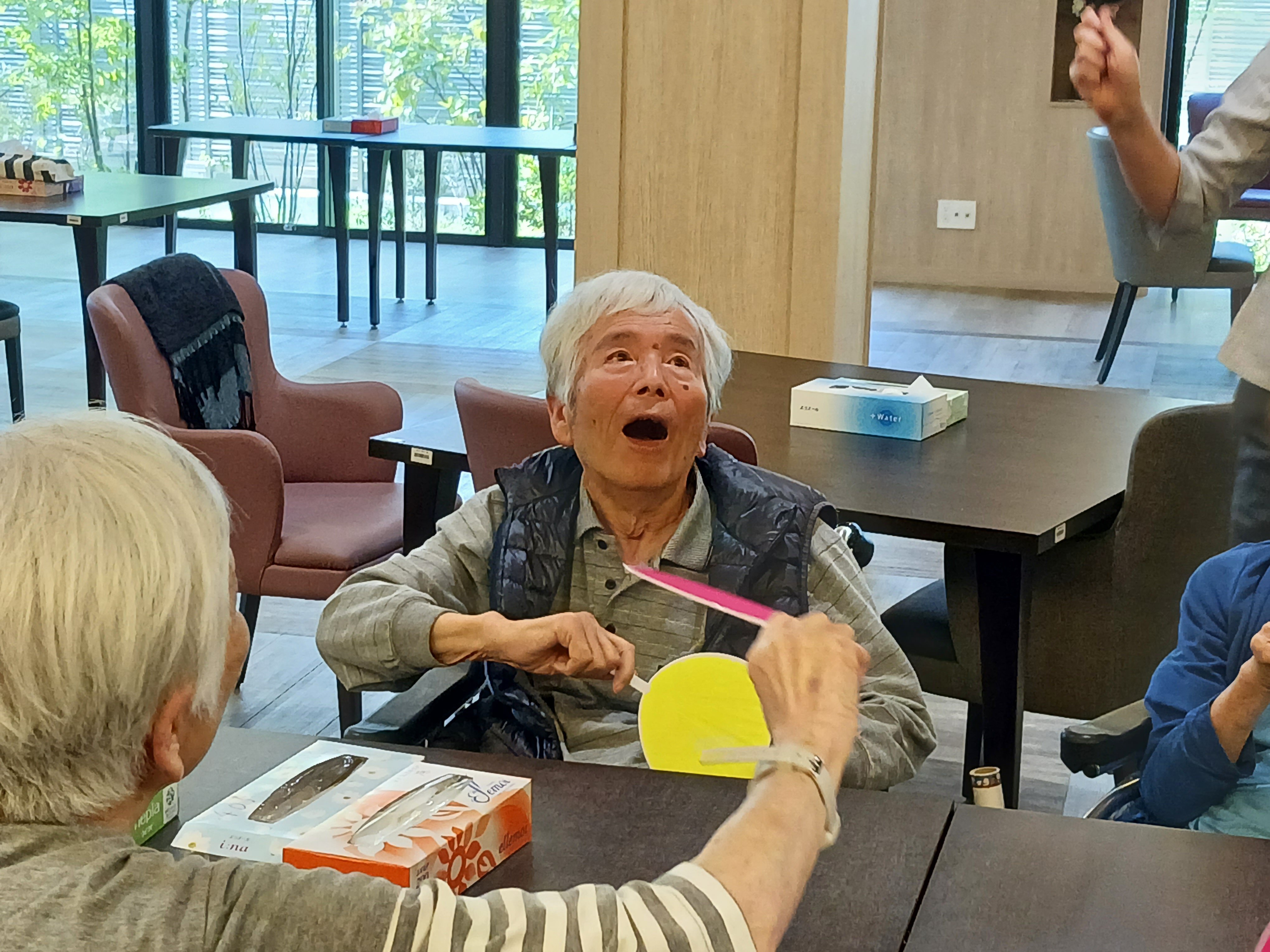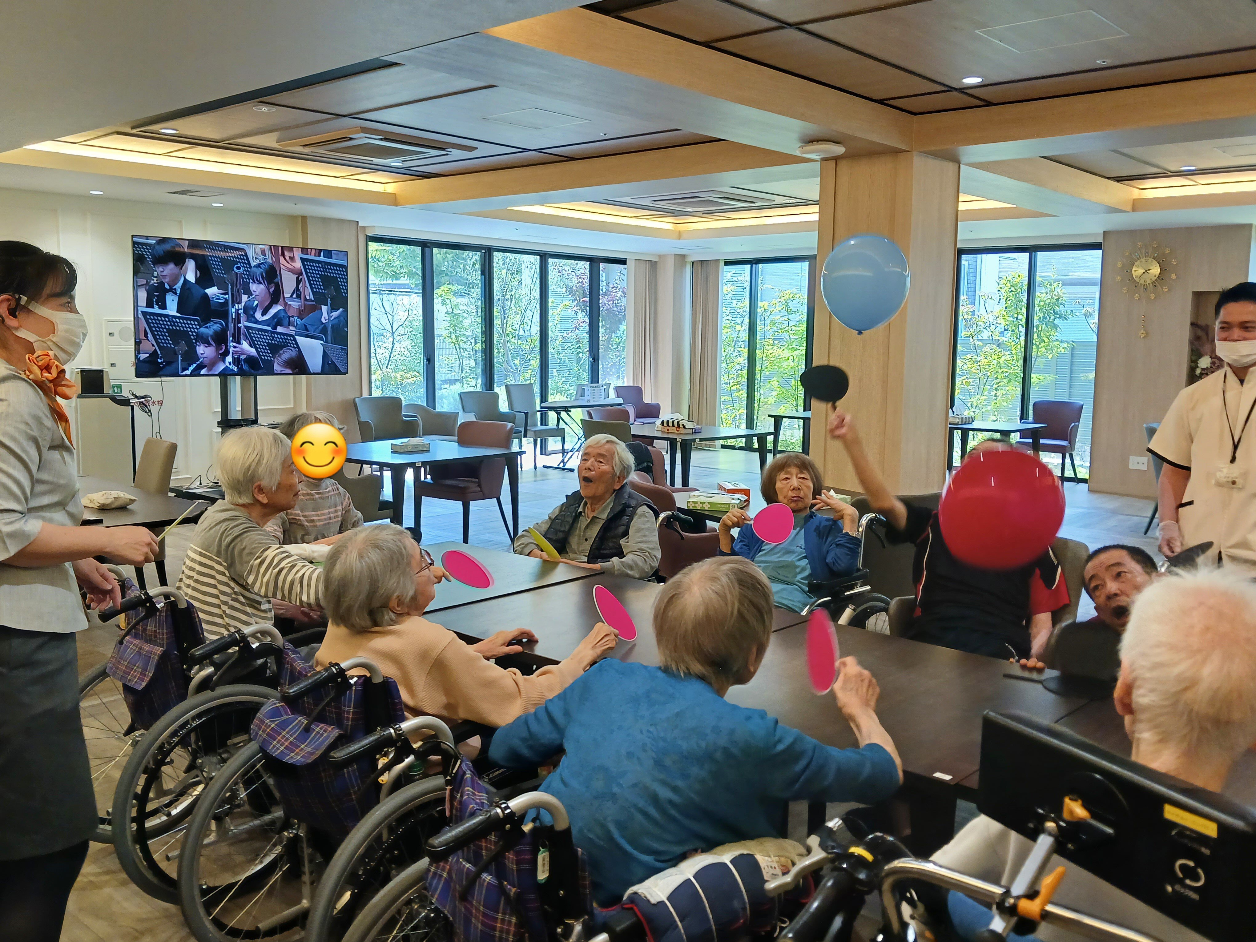 ご入居者にはミニうちわを持っていただき、風船バレー開始です☆彡
