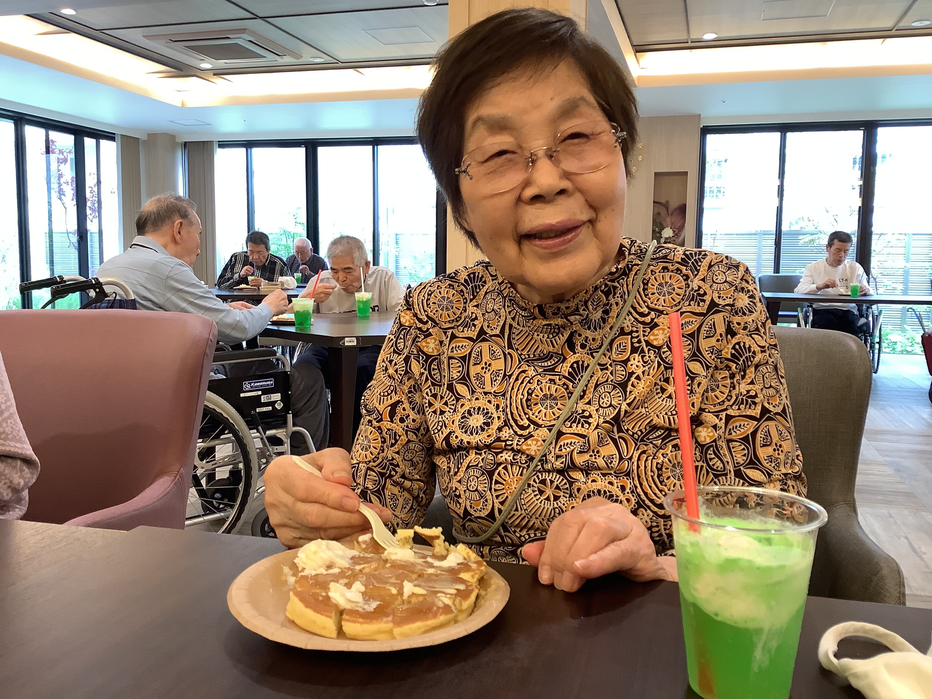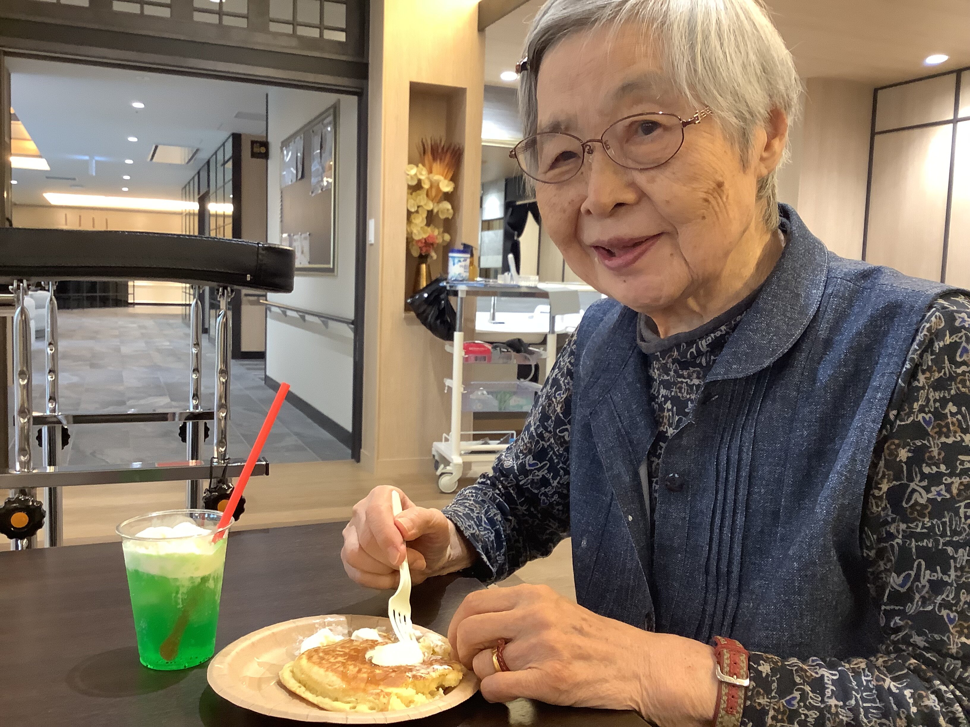 「ホットケーキなんて久しぶりに食べたわ、もう1枚食べたい!」と、大変喜んで下さいました^^