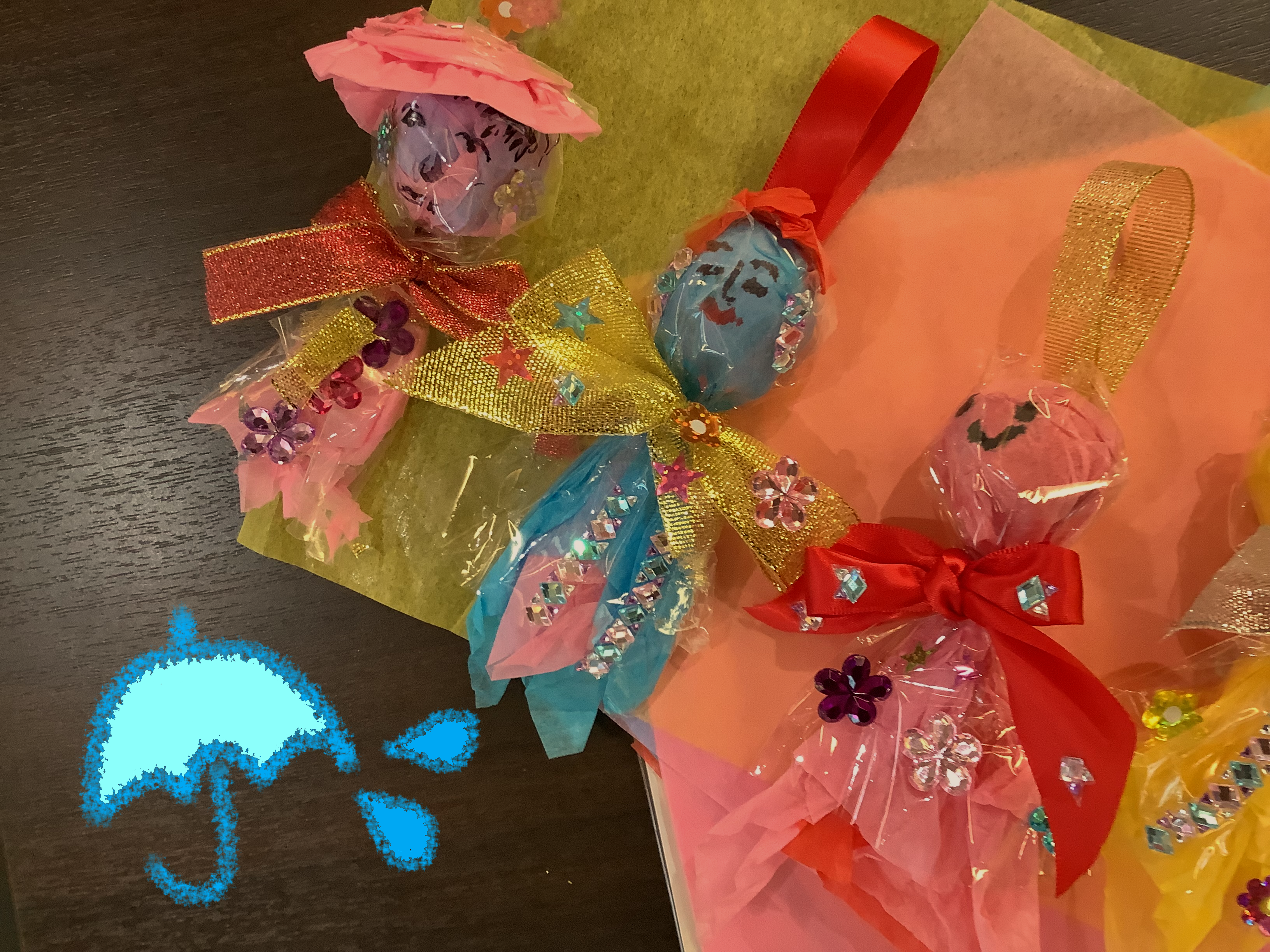 皆様、思い思いのてるてる坊主が完成しました!(*^^*)