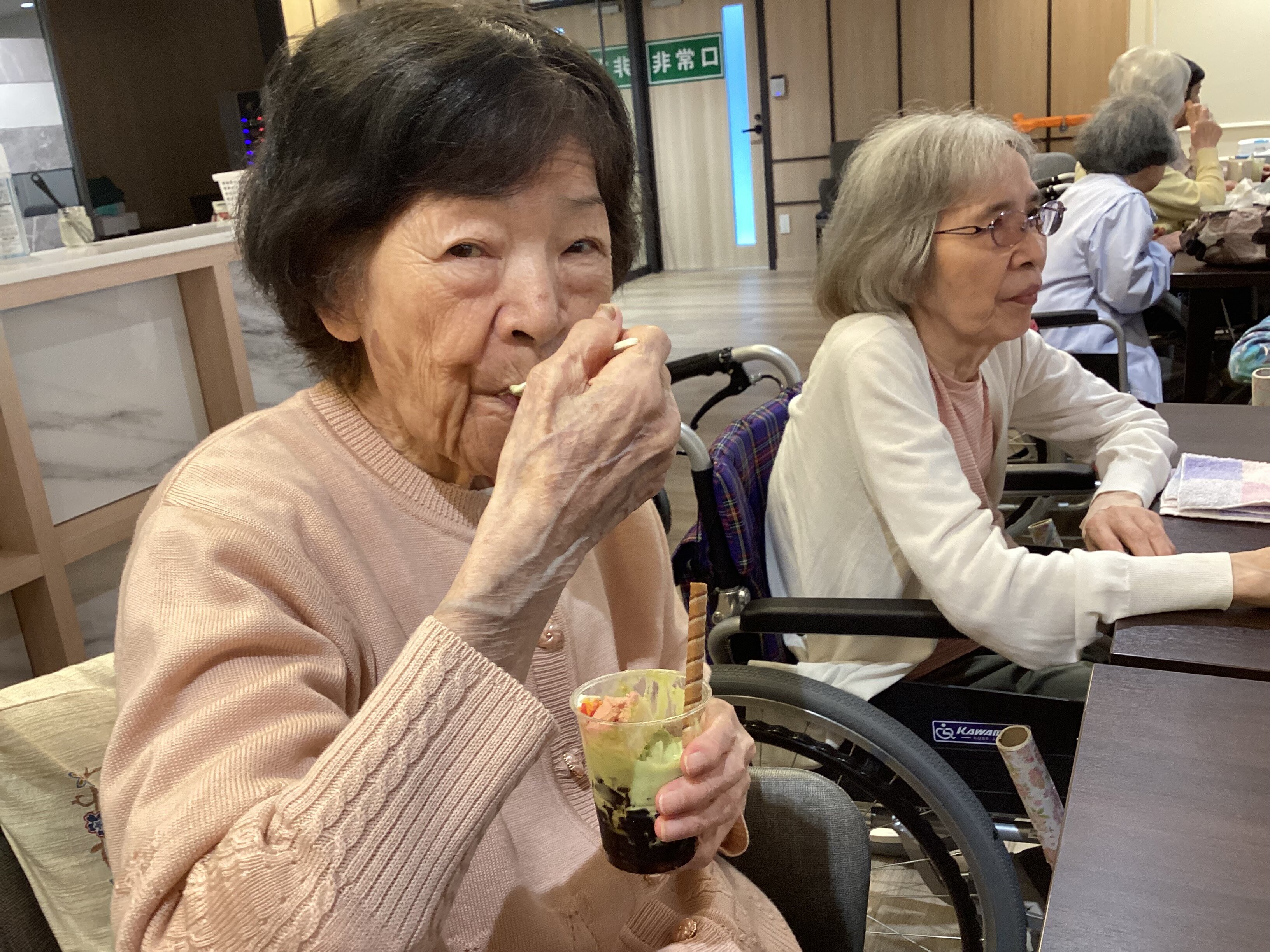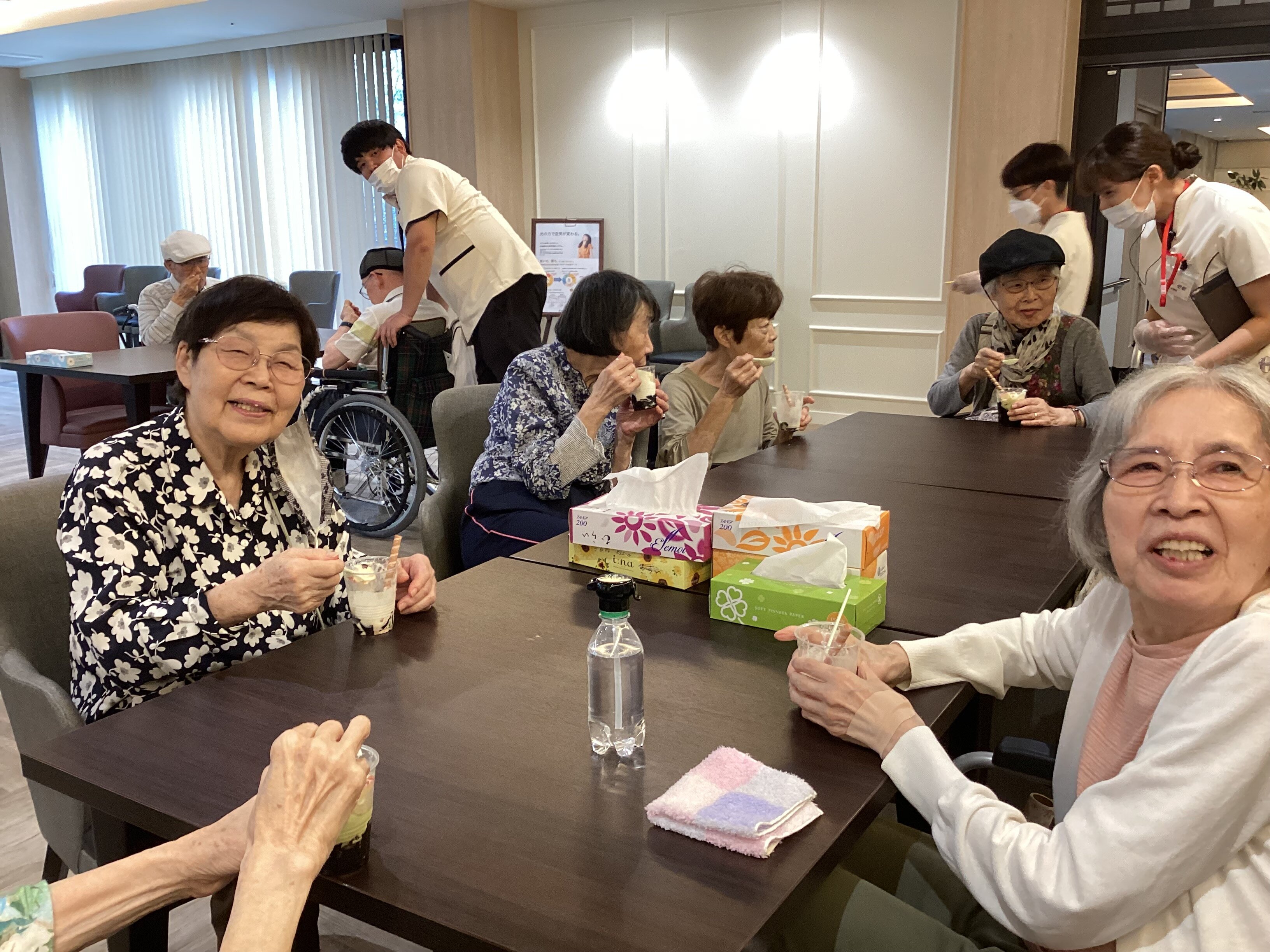提供が遅くなりましたが、和気あいあいと入居者様同士で会話されておられました。