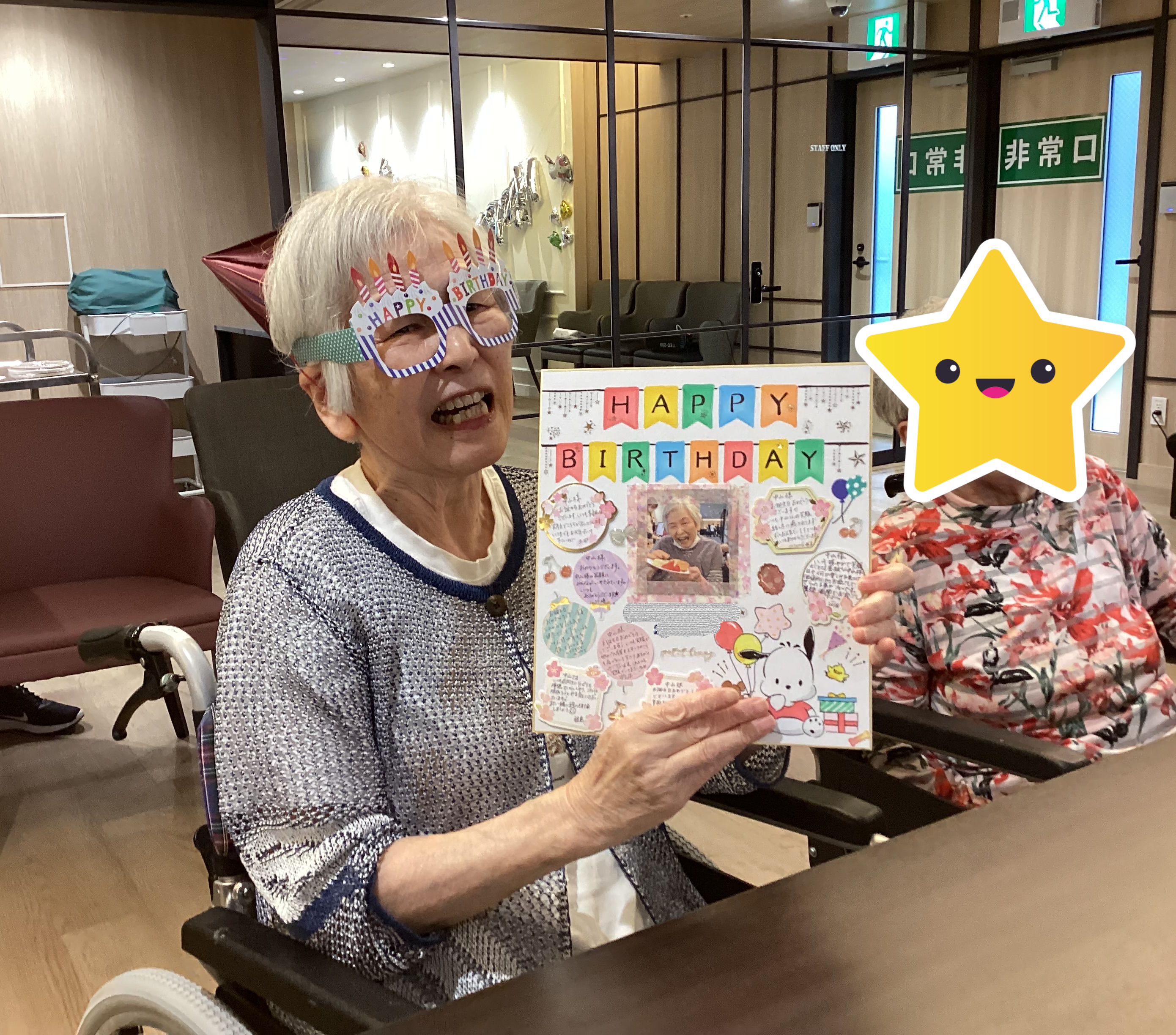 お誕生日会主役のご入居者も、準備バッチリです!(*^_^*)