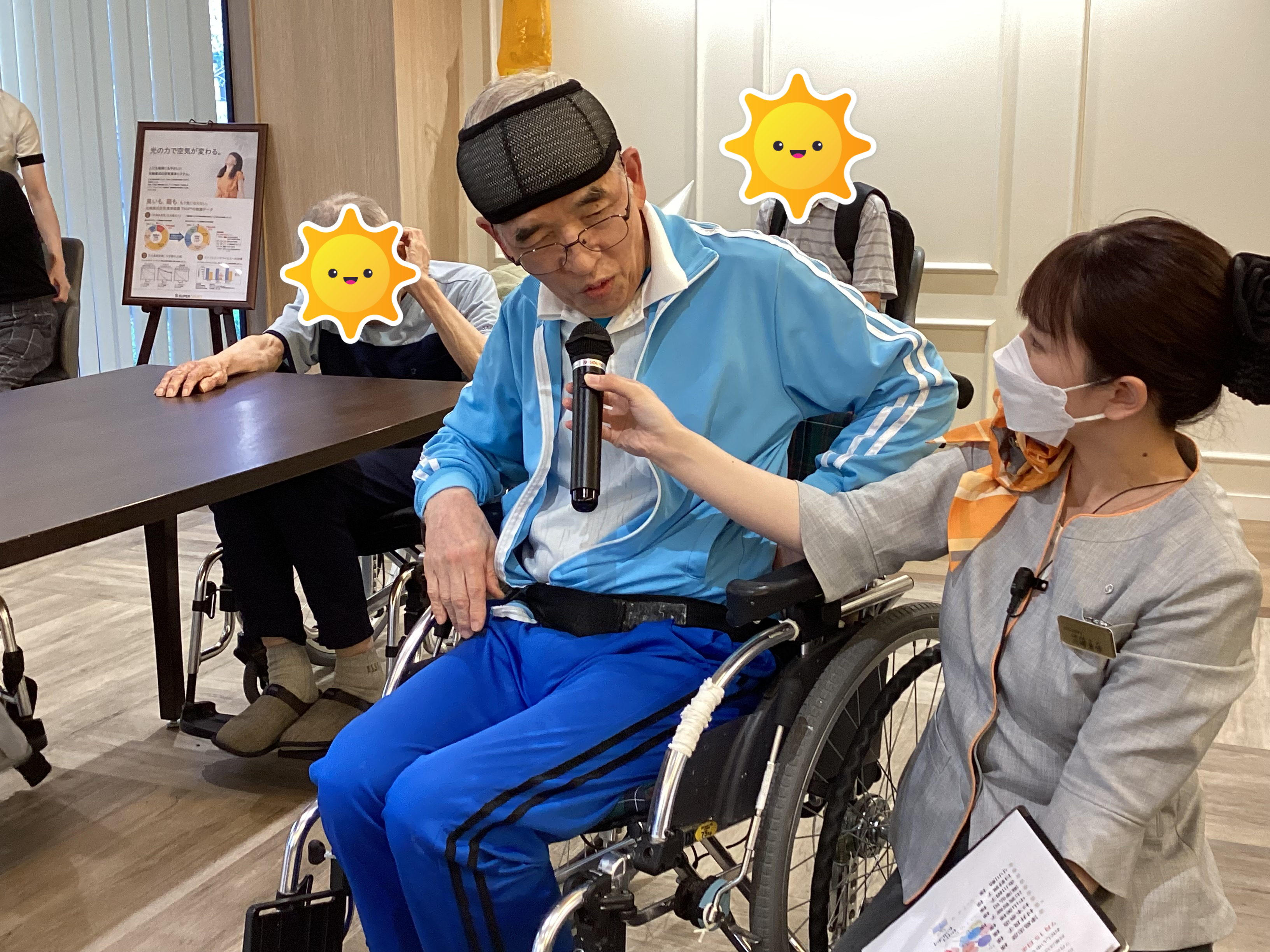 盛り上げ上手な入居者様の「ワン・ツー・スリーッ!!」の掛け声に合わせて、