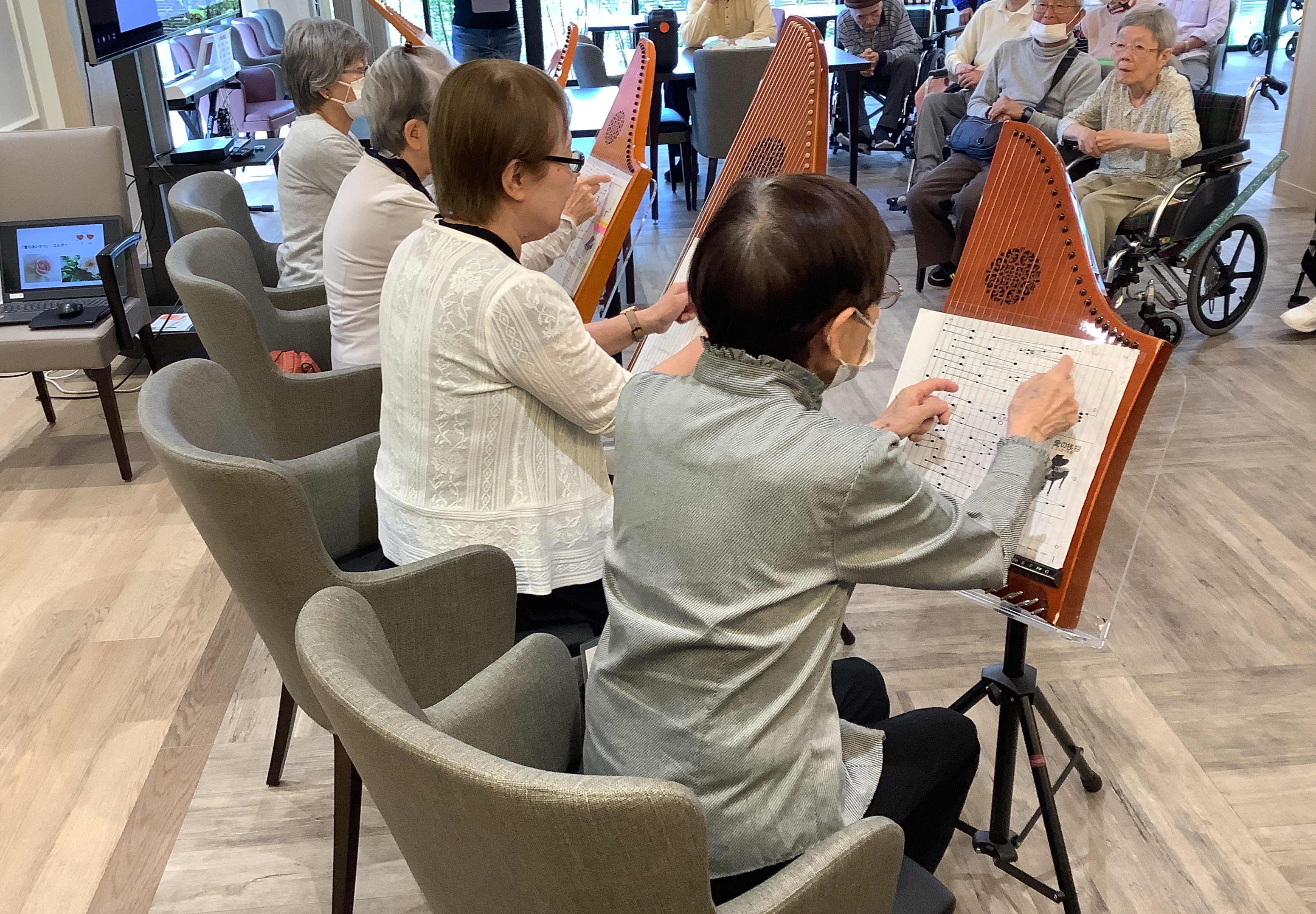 オリーブ・宝塚のご入居者は歌うことが好きな方が多く、合唱部が結成され、一年がたちました(^^)/