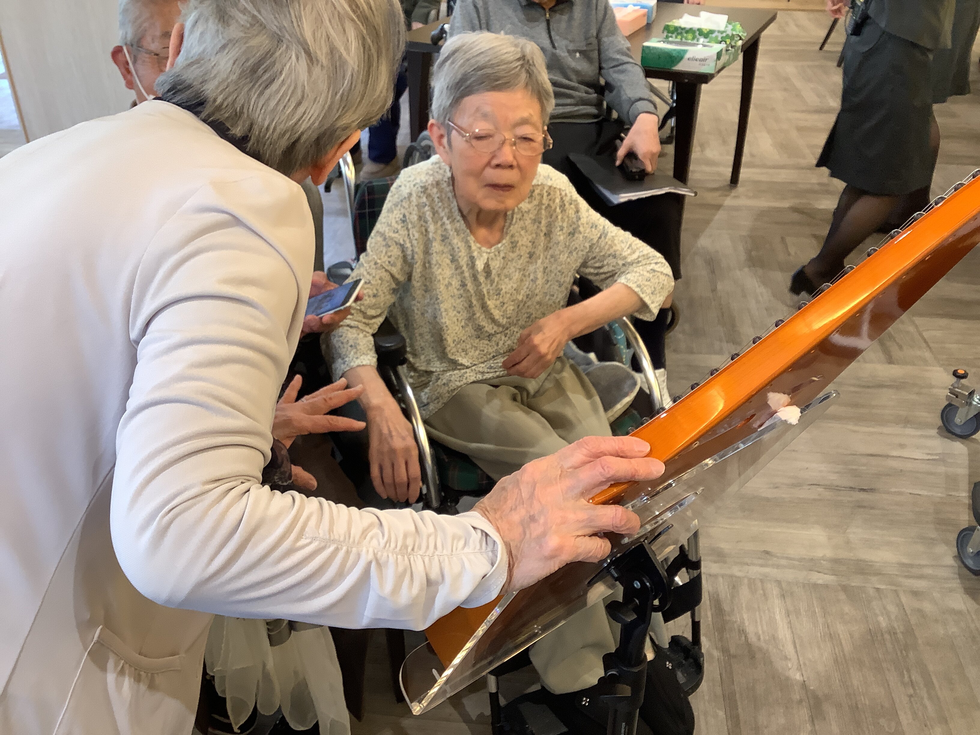 ご家族のご友人が音楽レクリエーションをしてくださるということで、お越しいただきました(^^)/