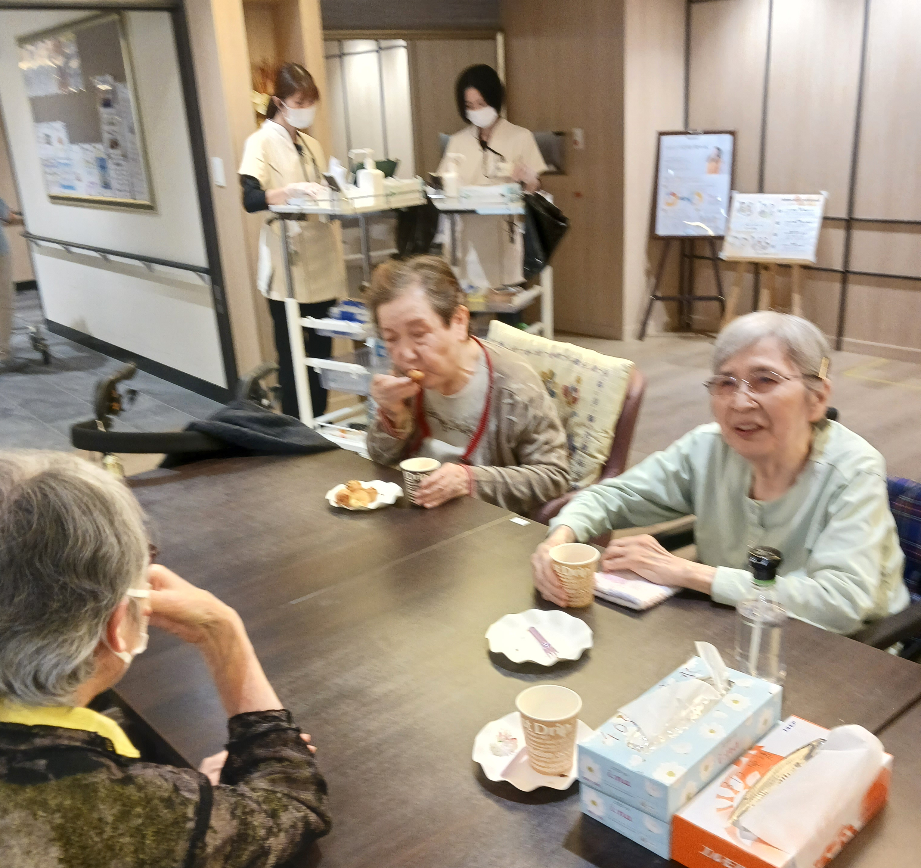ご入居者の皆様はあんこが大好きということで、御座候の回転焼きを召し上がっていただきました♪