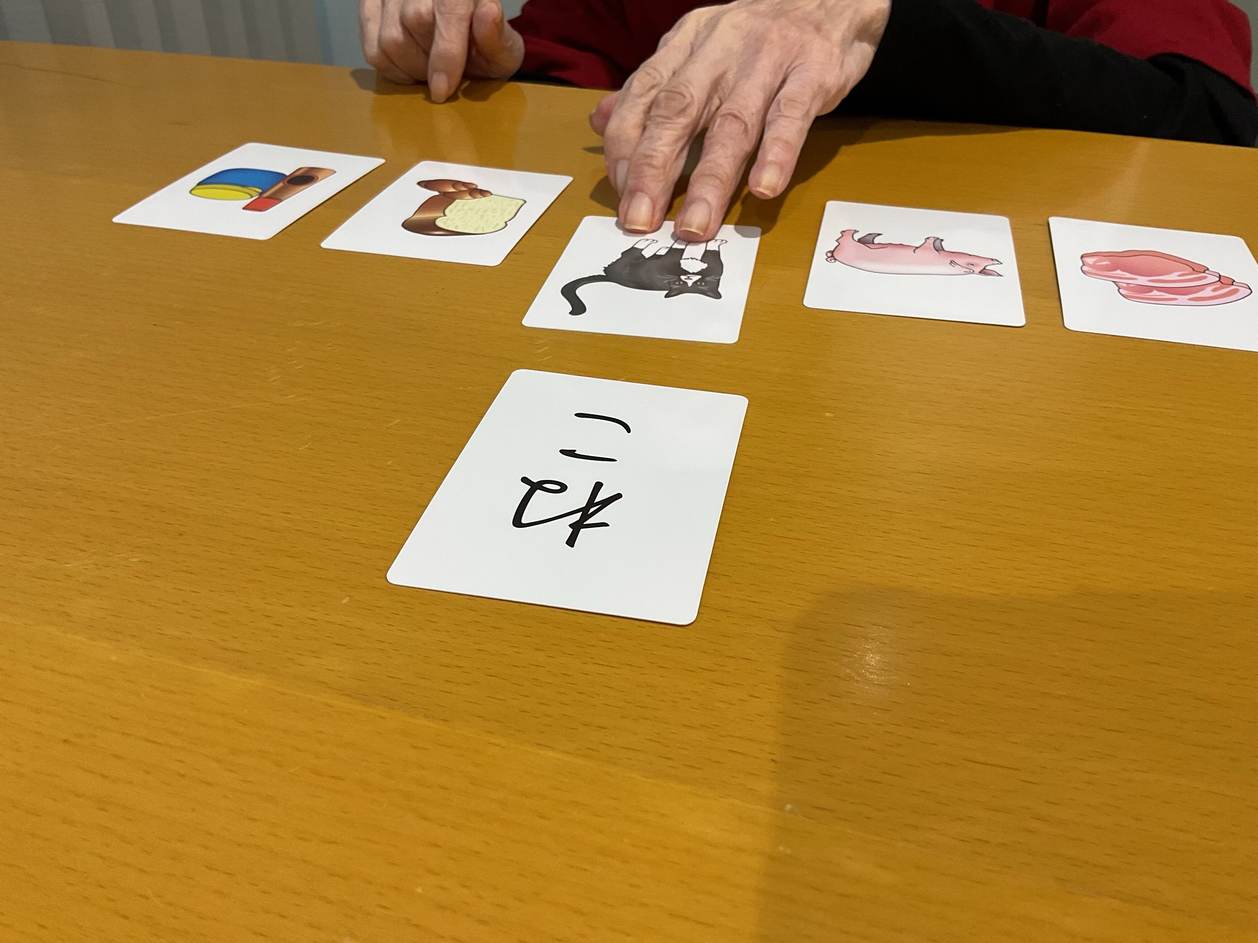 こちらは「うし」という言葉を聞いて「うしのカード」を選んでいただく訓練です。