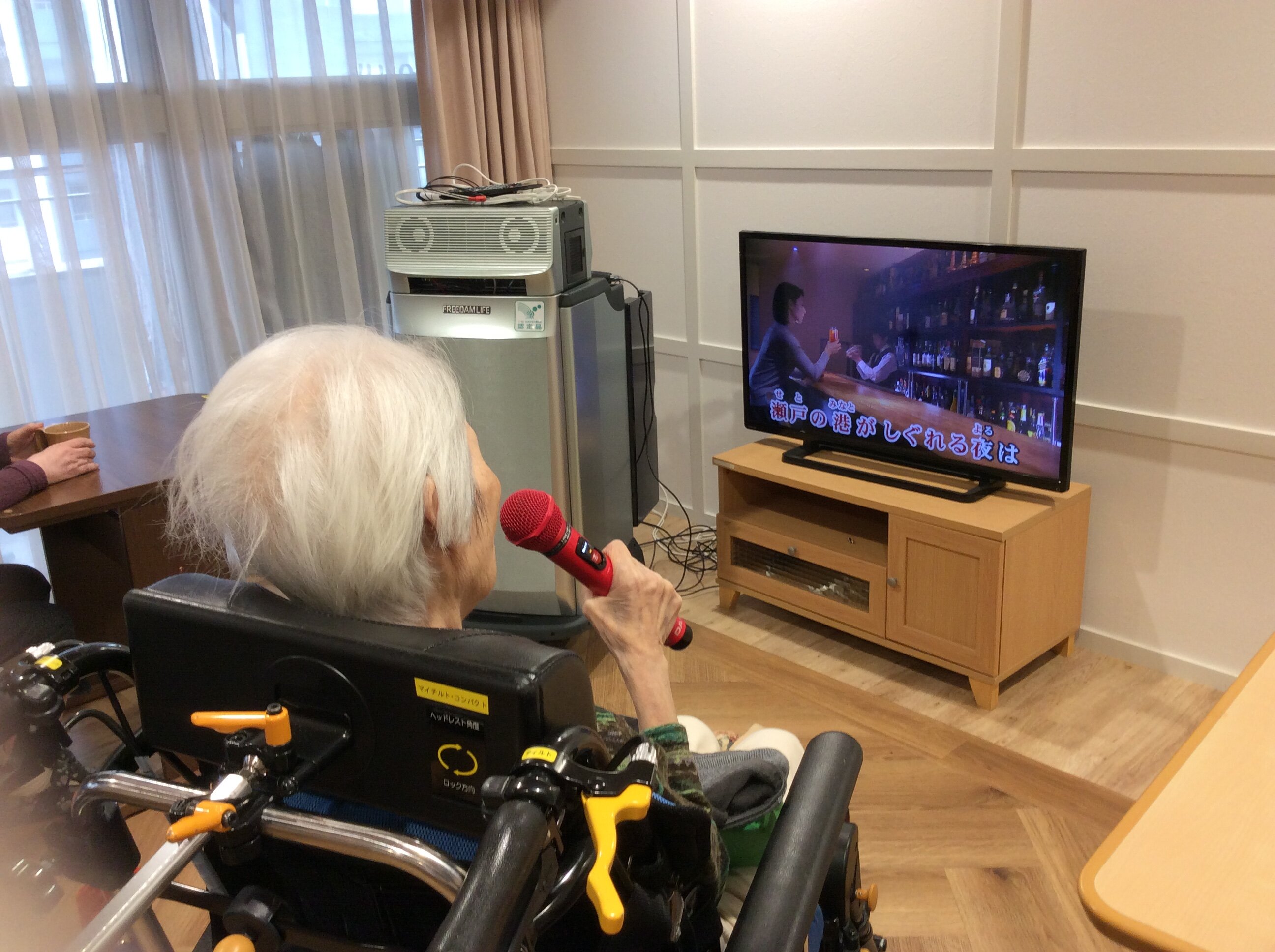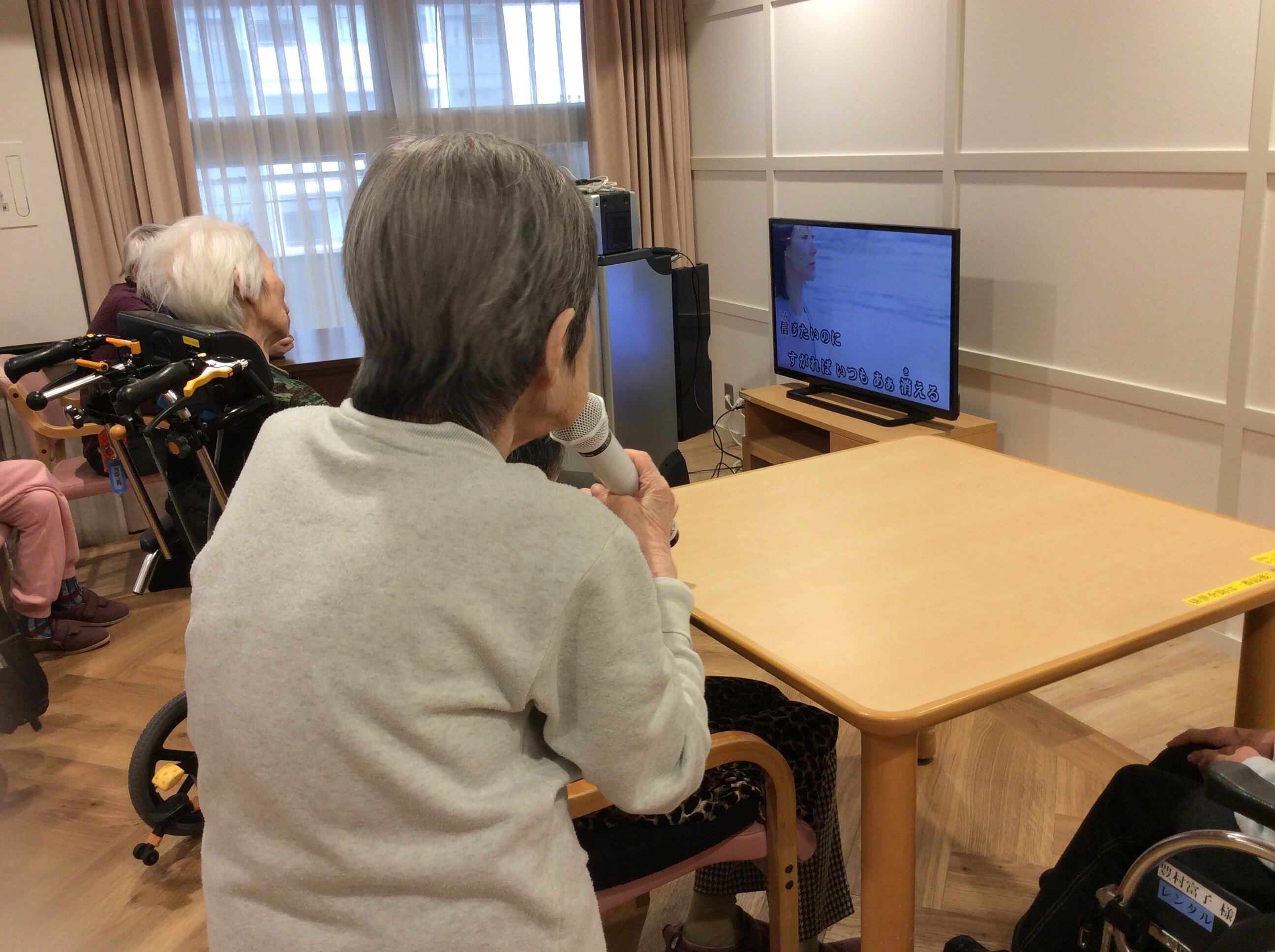 施設内ではカラオケのレクリエーションを定期的に行っております♪