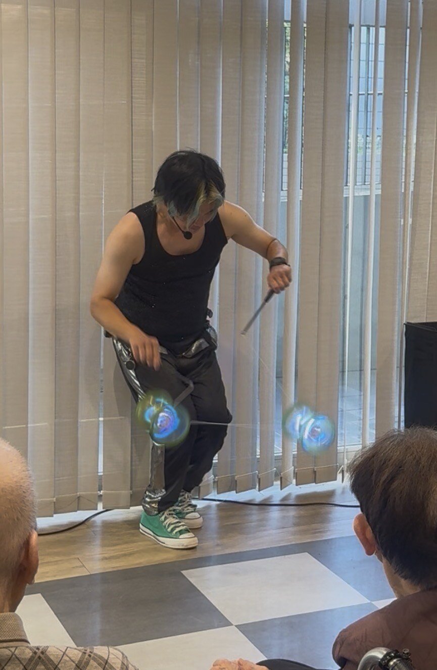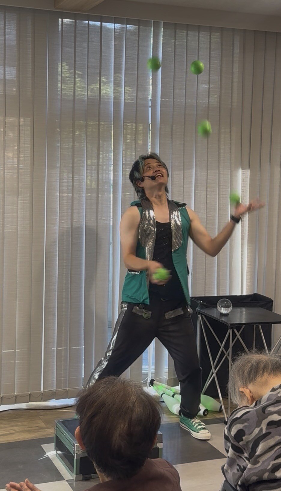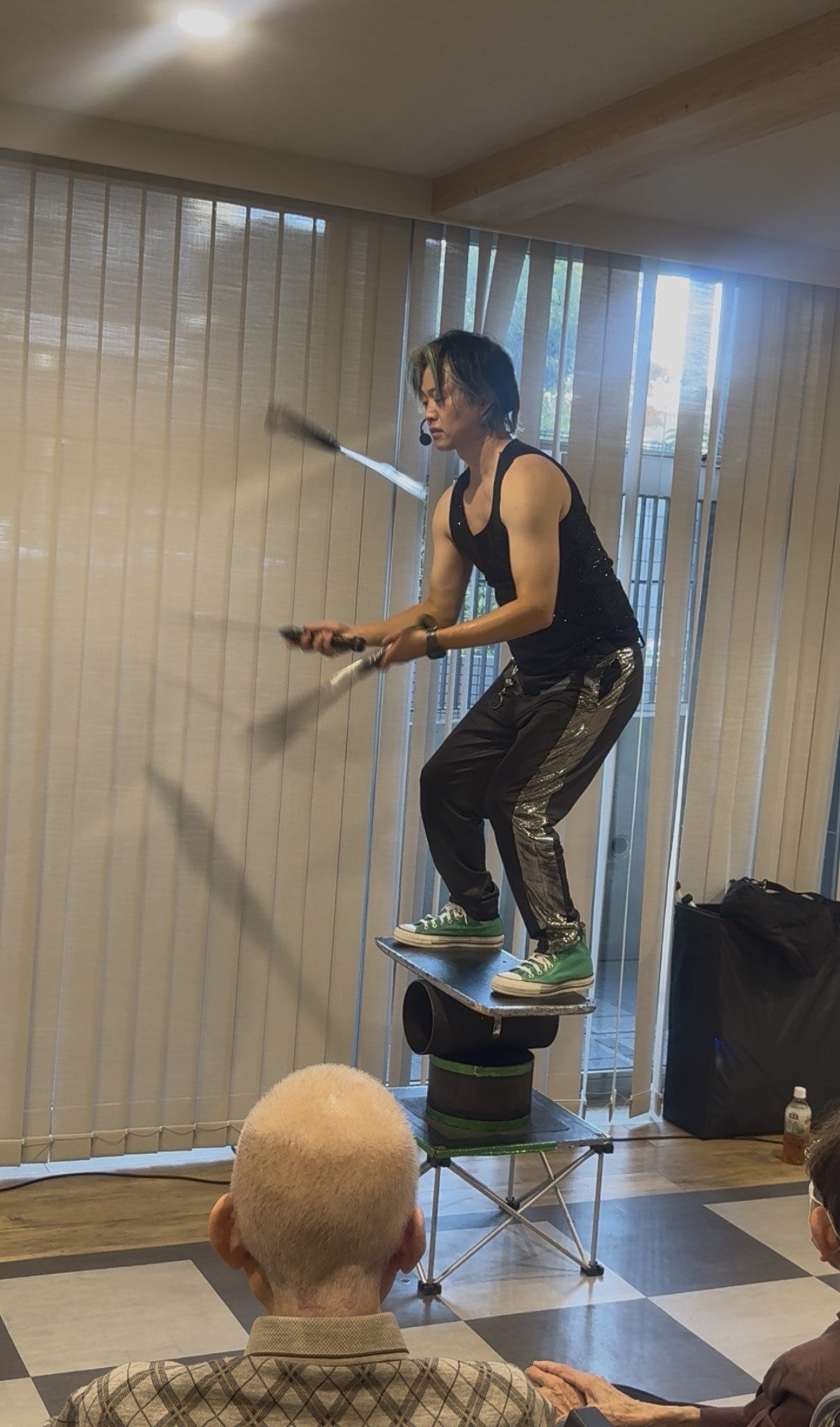 続いて、定番のジャグリングやダイススタッキング、ディアボロなどボケやツッコミと楽しいお話しも交えて٩(ˊᗜˋ*)و