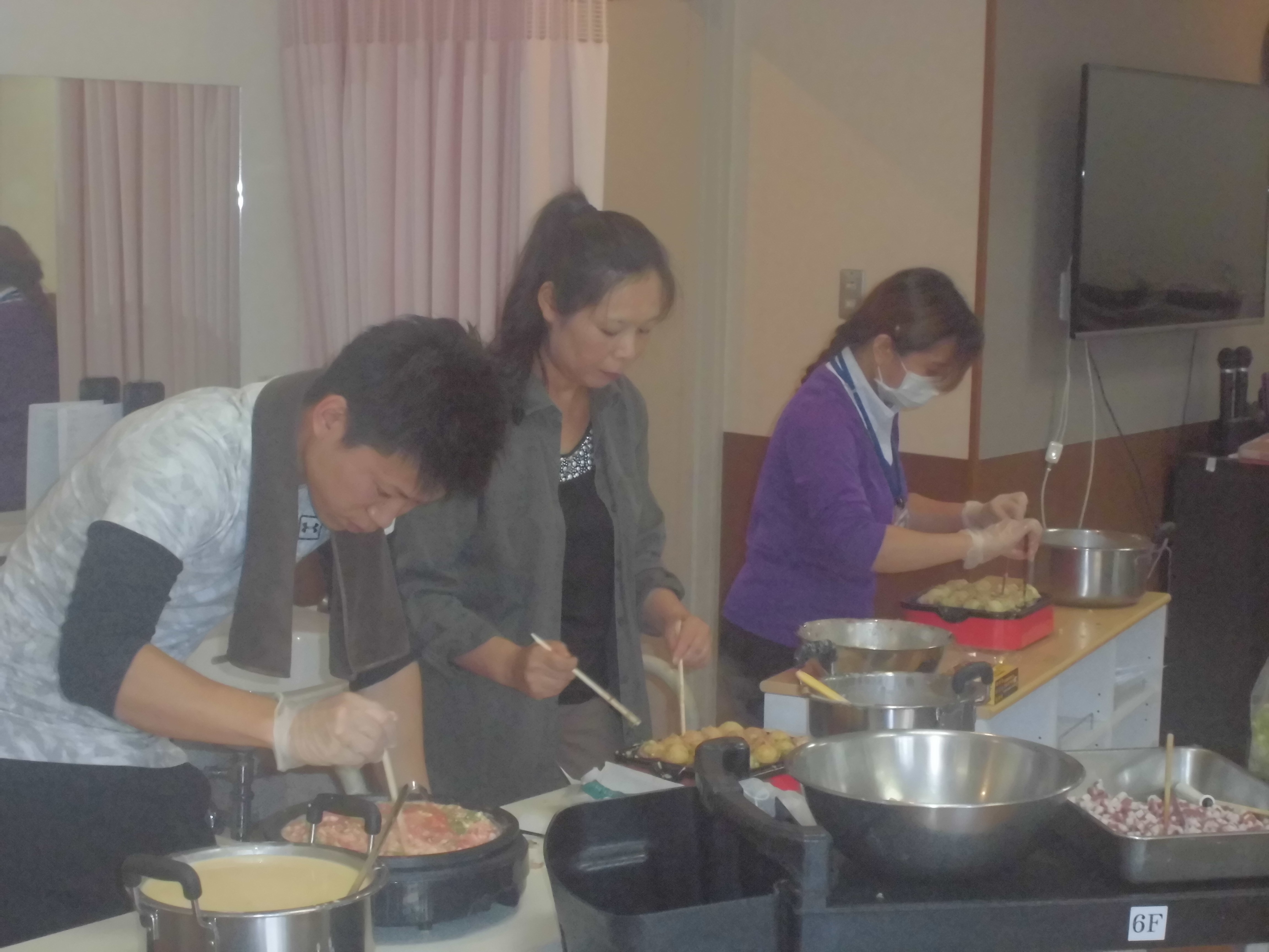 施設長も進んでたこやき作り!たこやき作りだけにクッキングにも熱が入ります。