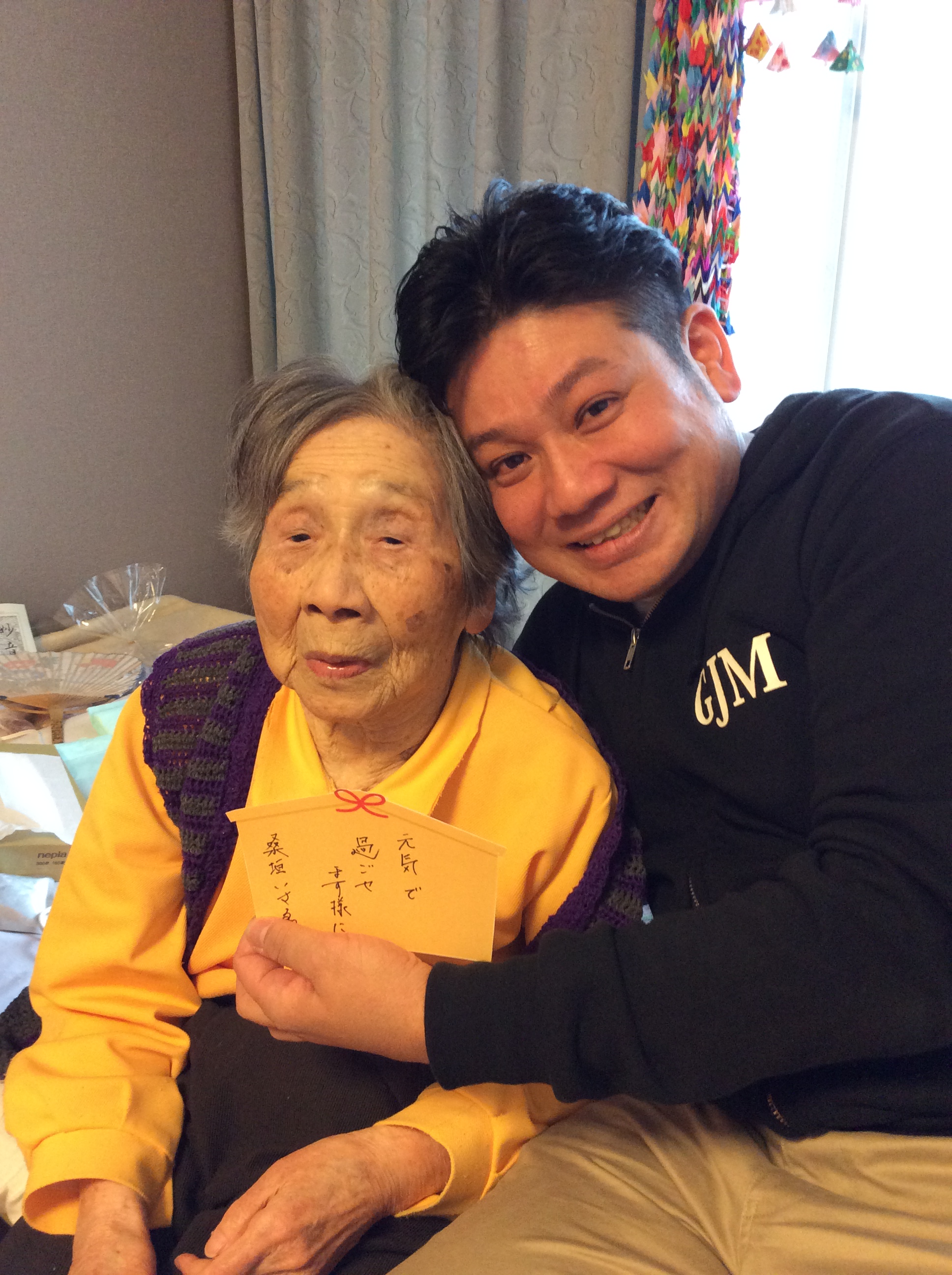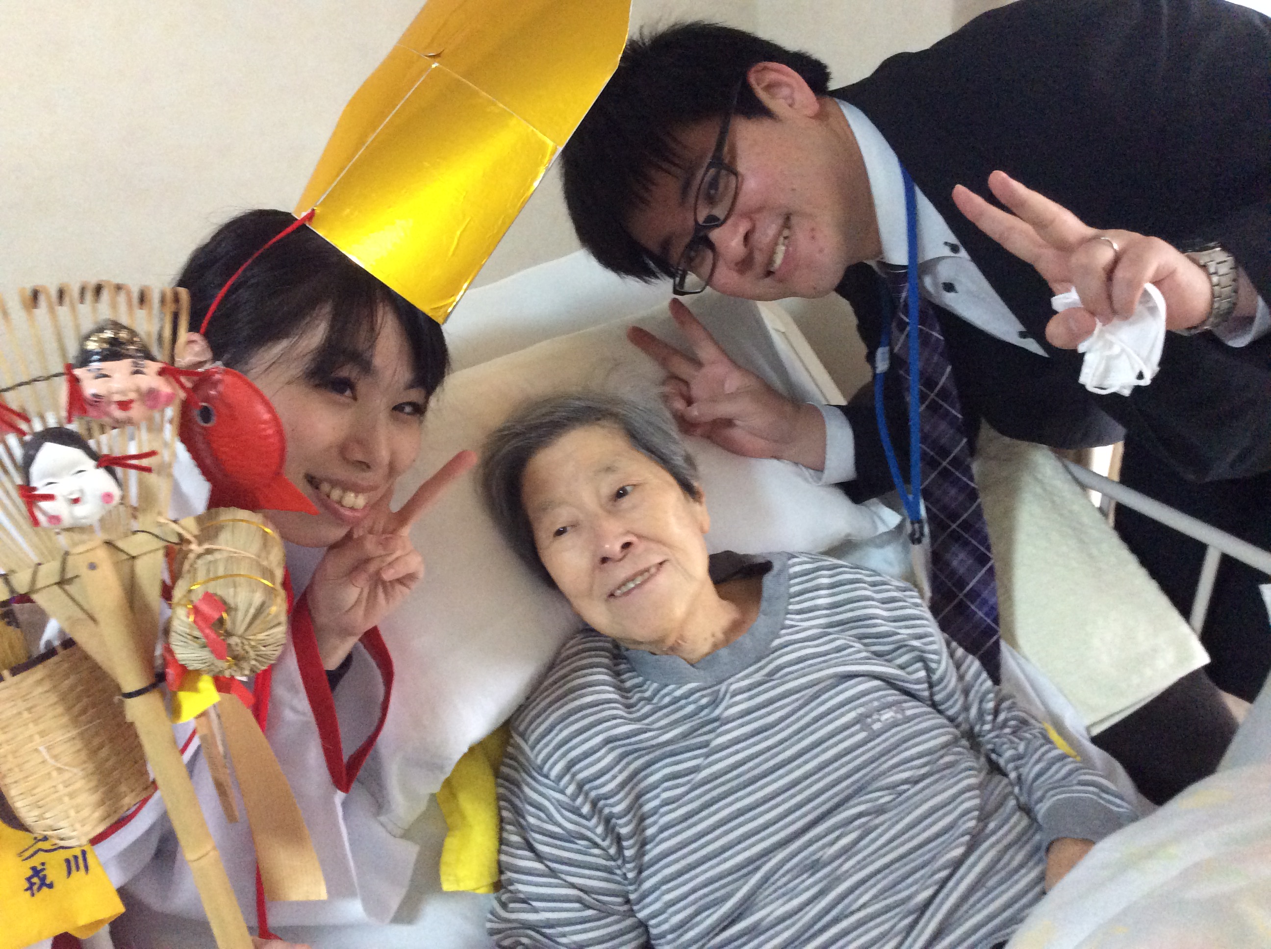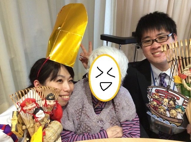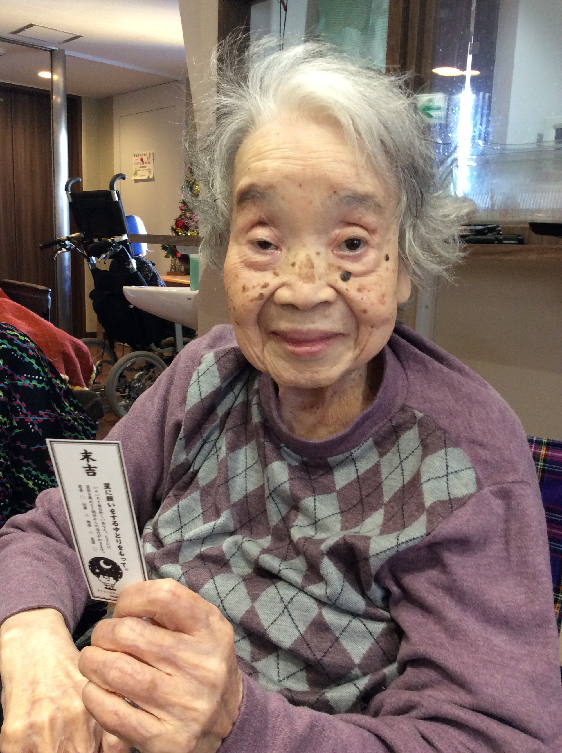 施設長にも新年書初めということで一筆書いて頂きました。作品名は「笑顔」です!