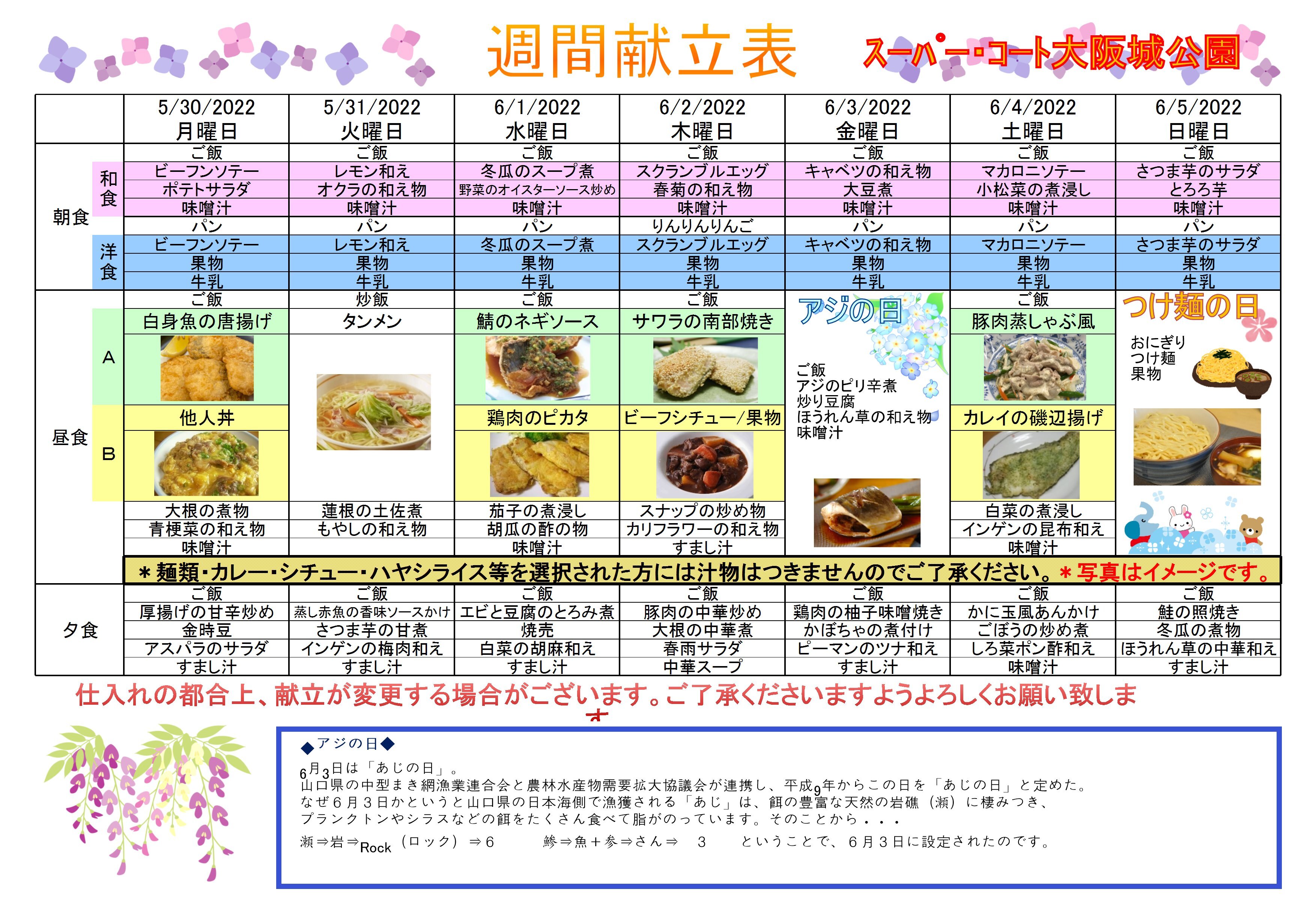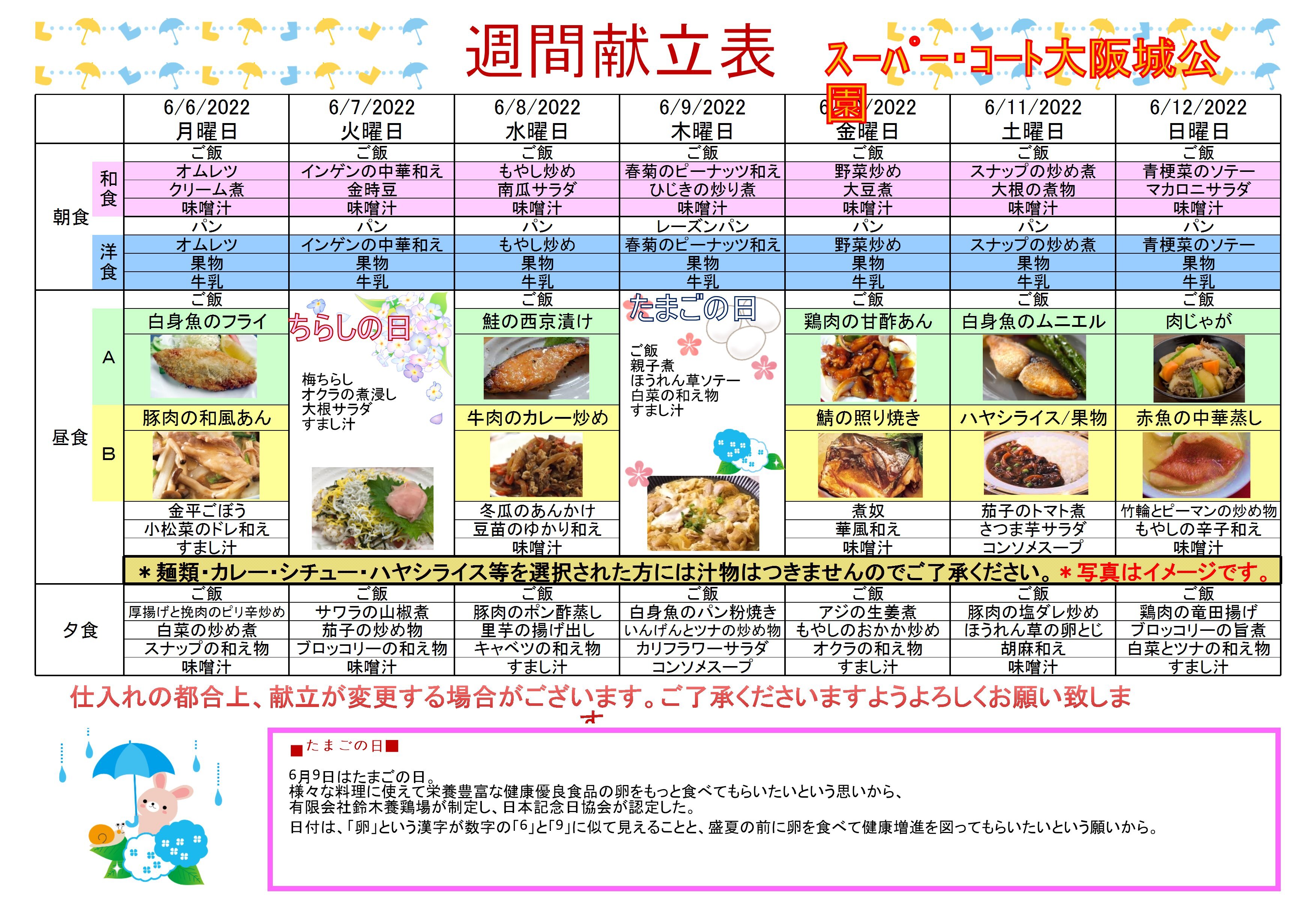 さて、6月前半の献立を公開いたします!