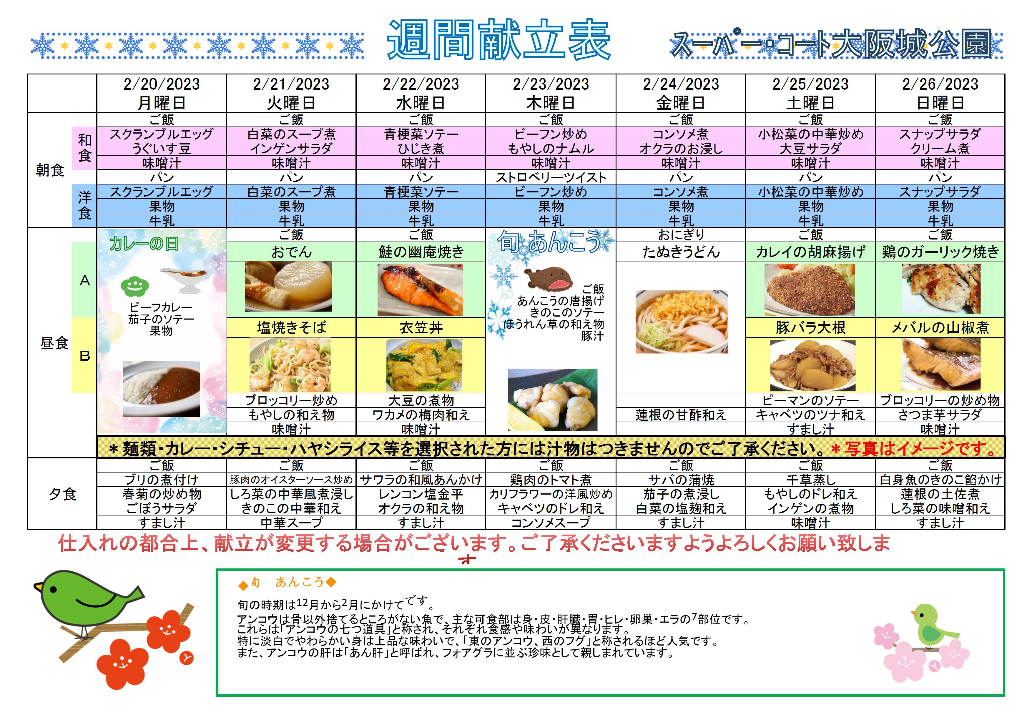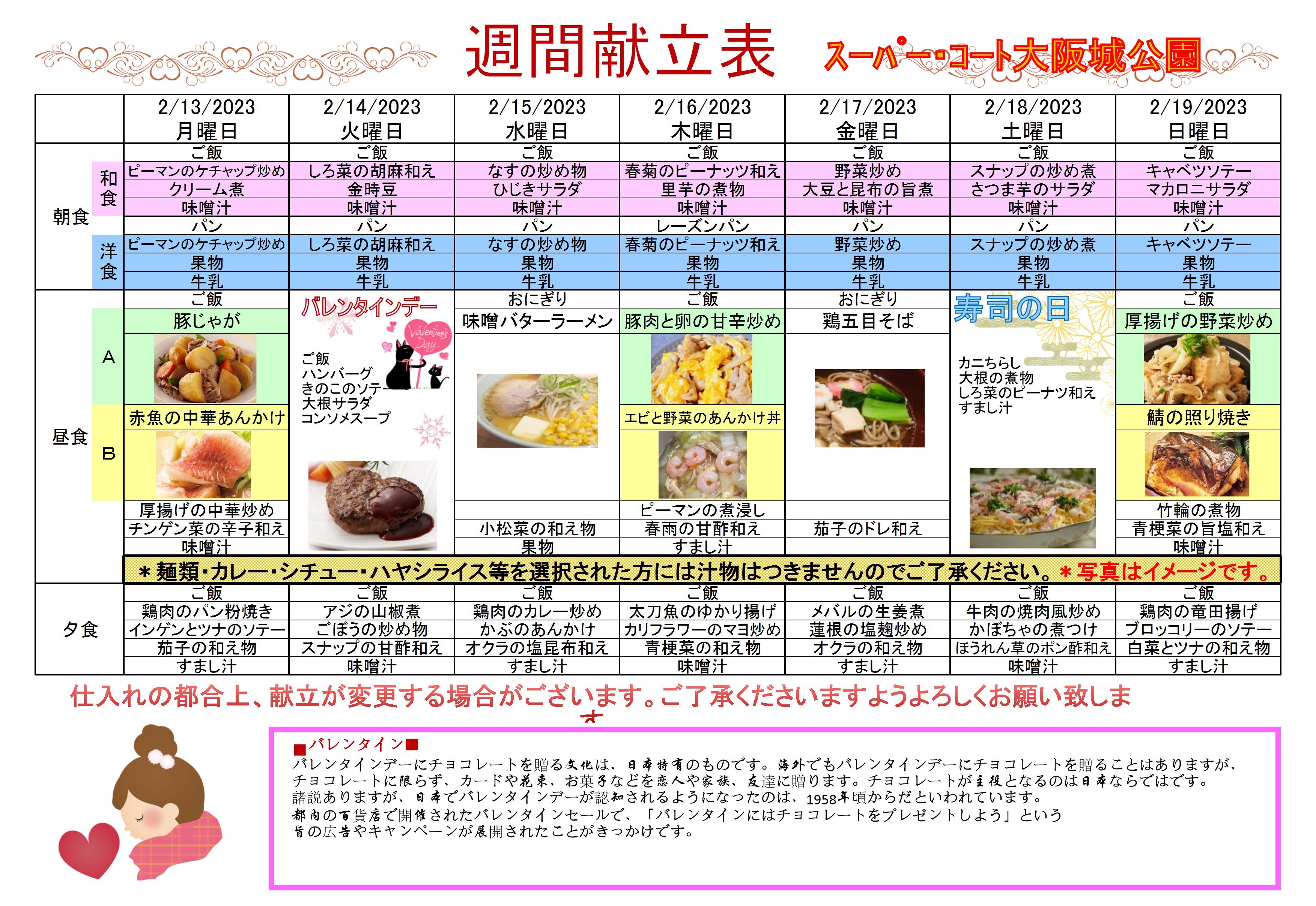 2月の前半の献立はお休みしてしまいましたので、後半を早速公開いたします。