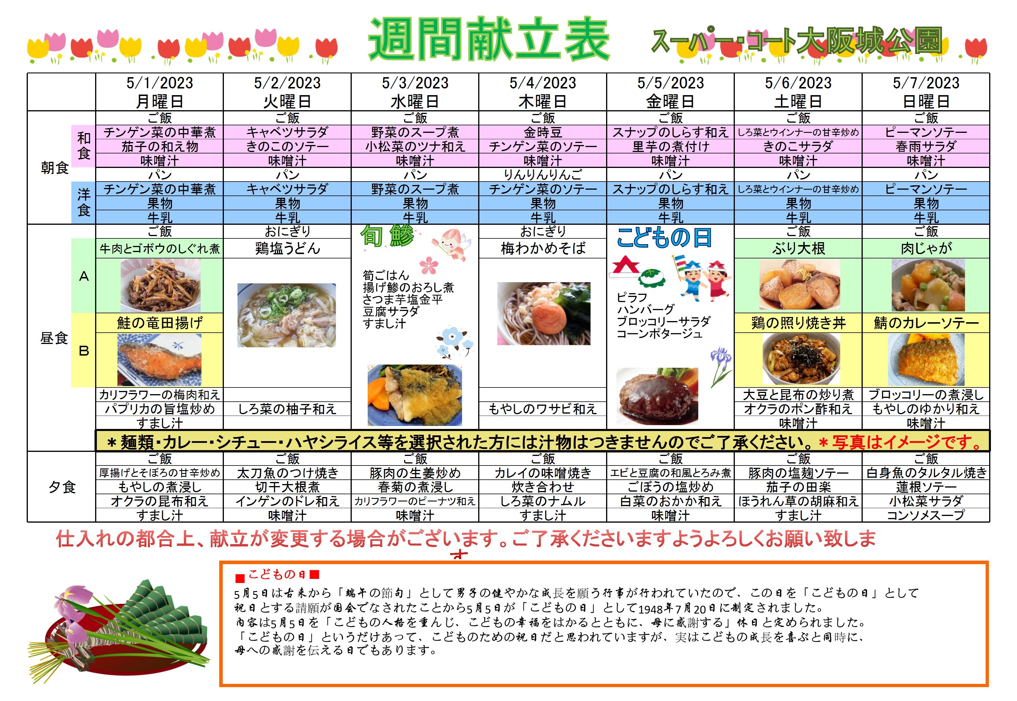 5月の献立公開いたします★