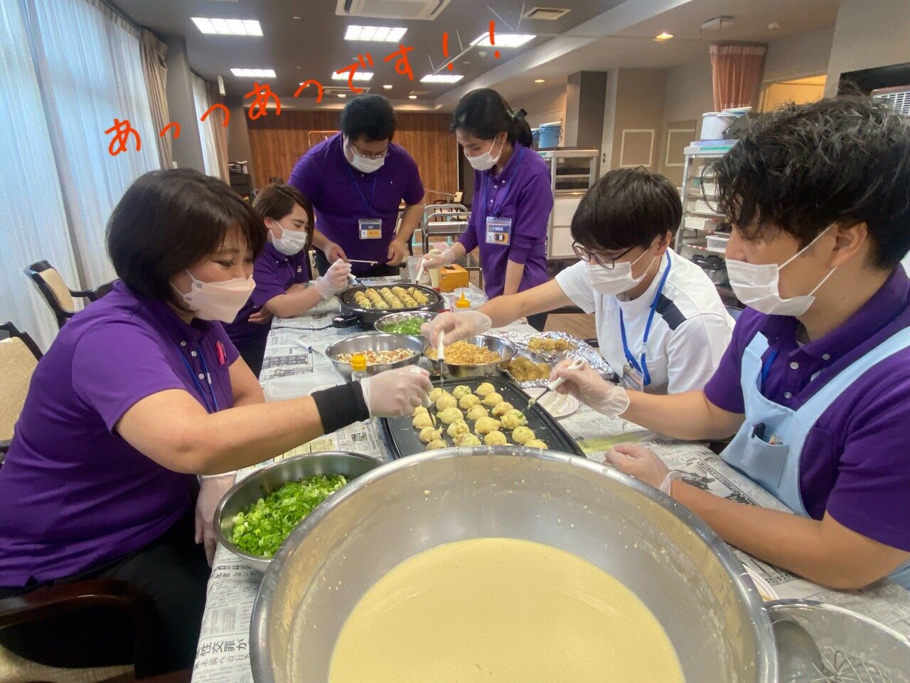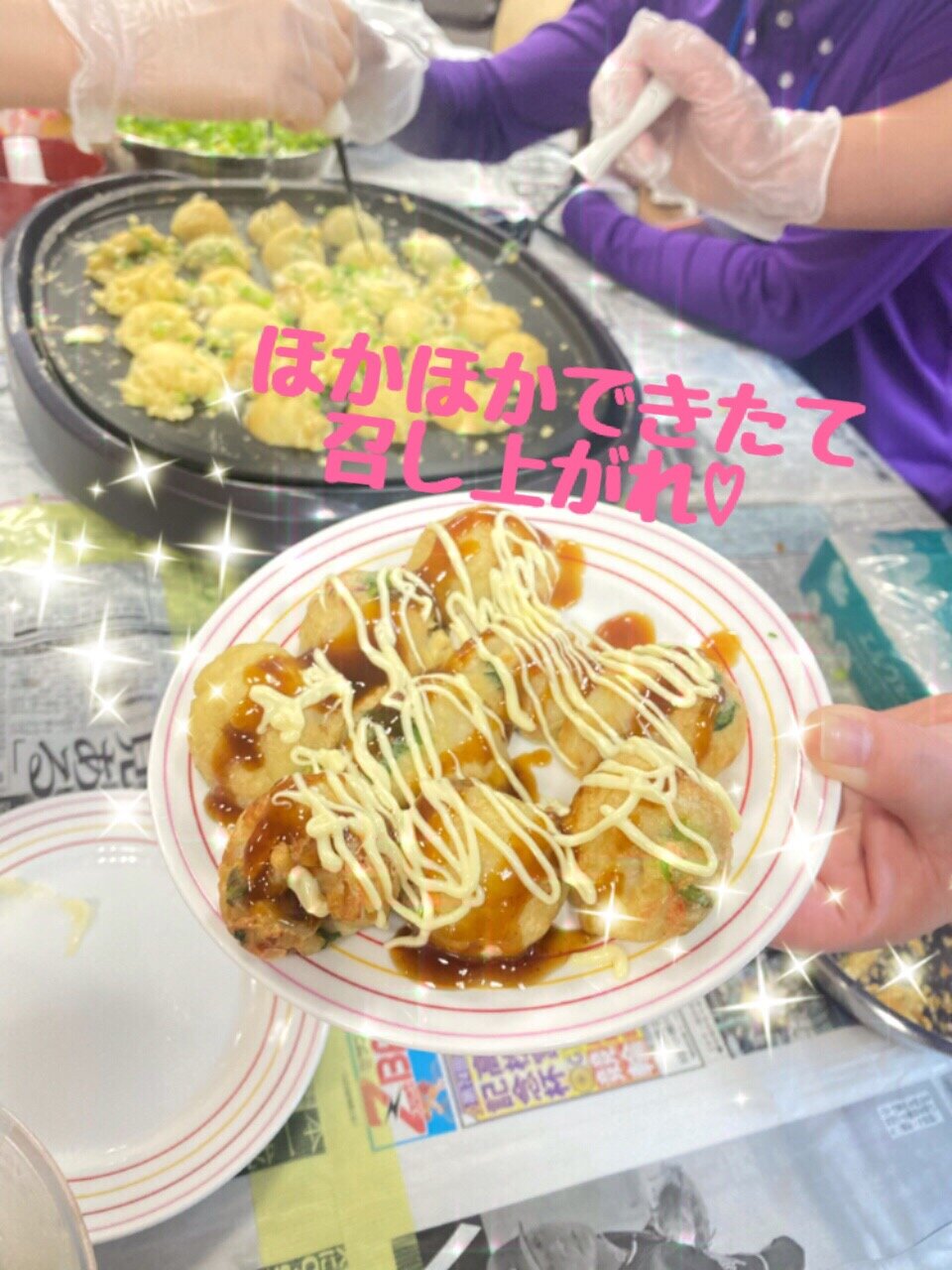 今年も開催しました、たこ焼きレク!年に一度のみんな大好き粉物グルメ、朝から職員達で調理に奮闘していました!![]()