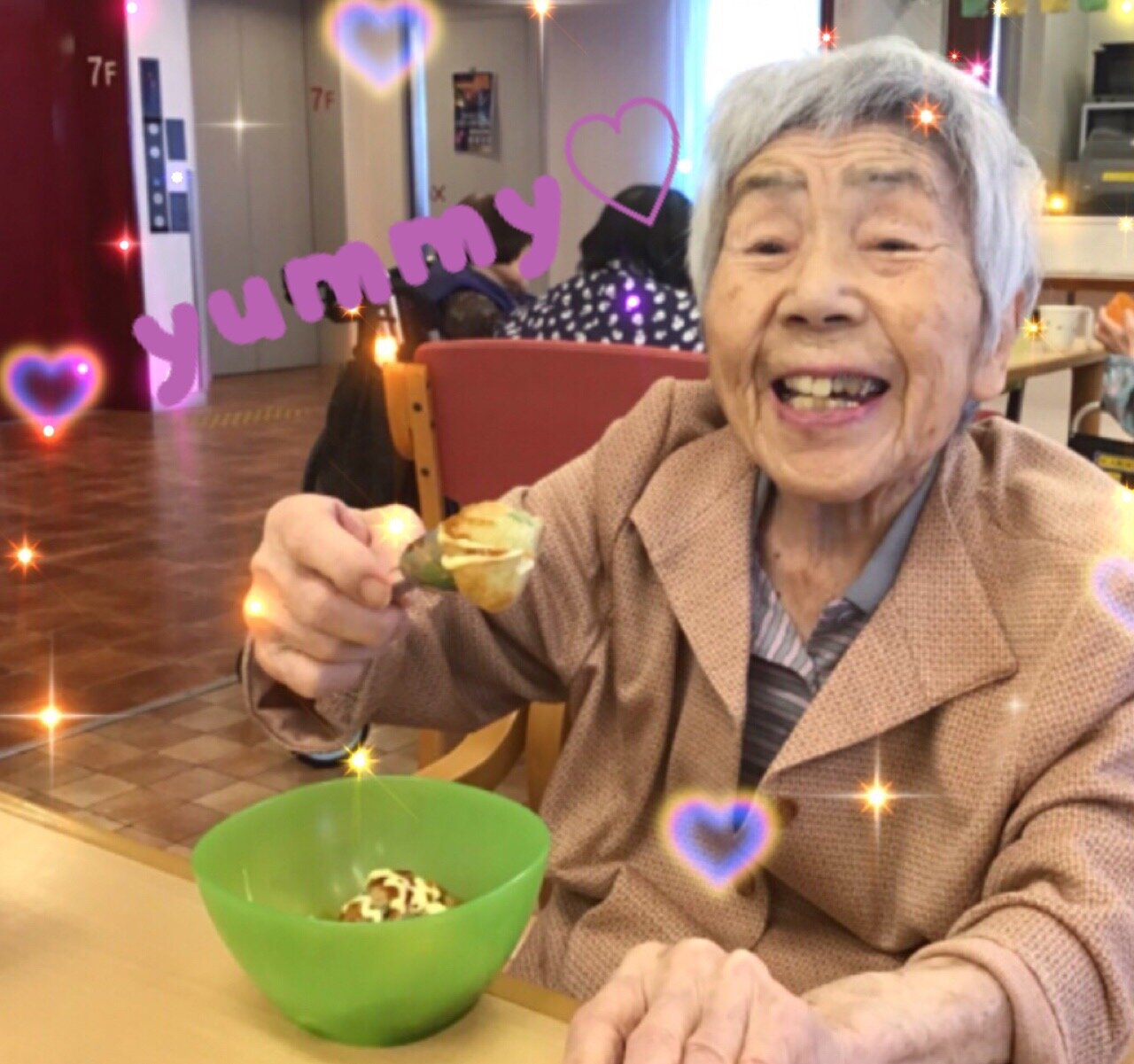 おやつの時間になって、たこ焼きを心待ちにされていたみなさんに配っていくと「美味しそう!」「たこ焼き好きやから嬉しいわぁ!」と大変喜んでいただけました