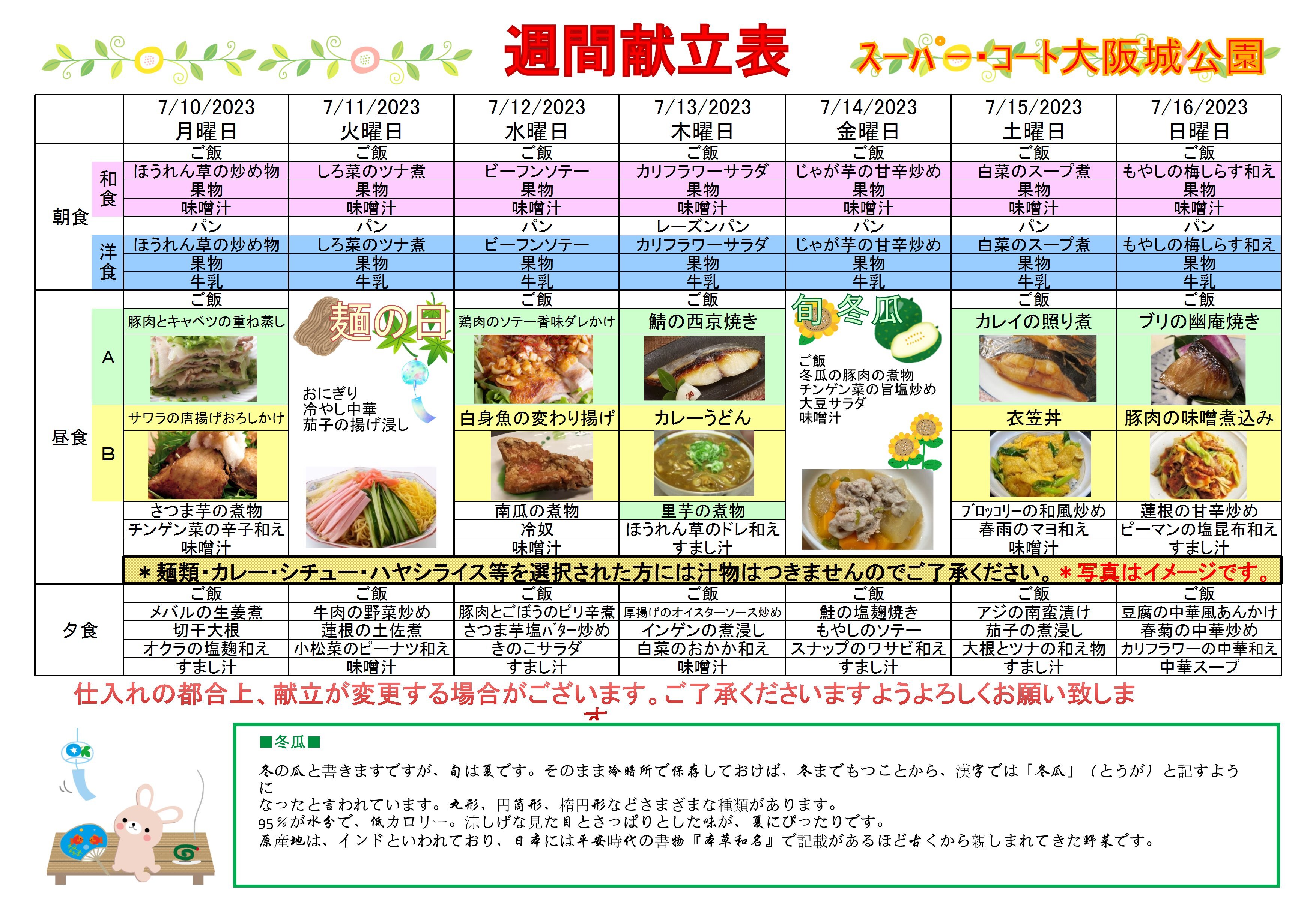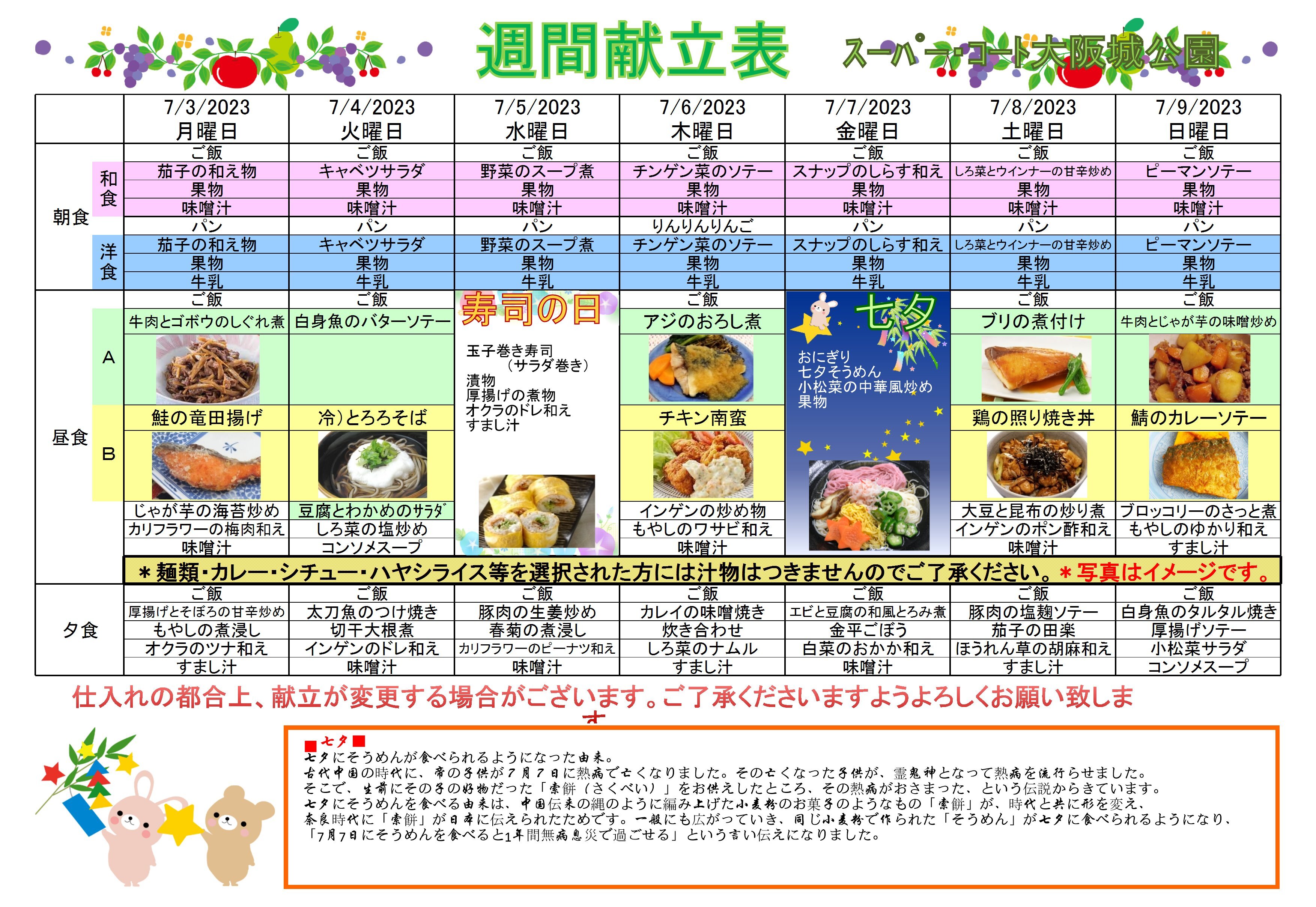 さて、そんな7月前半の献立表を公開いたします(*^-^*)