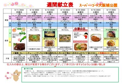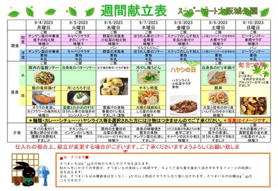 9月の前半の献立を公開いたします~~♥(。→v←。)♥
