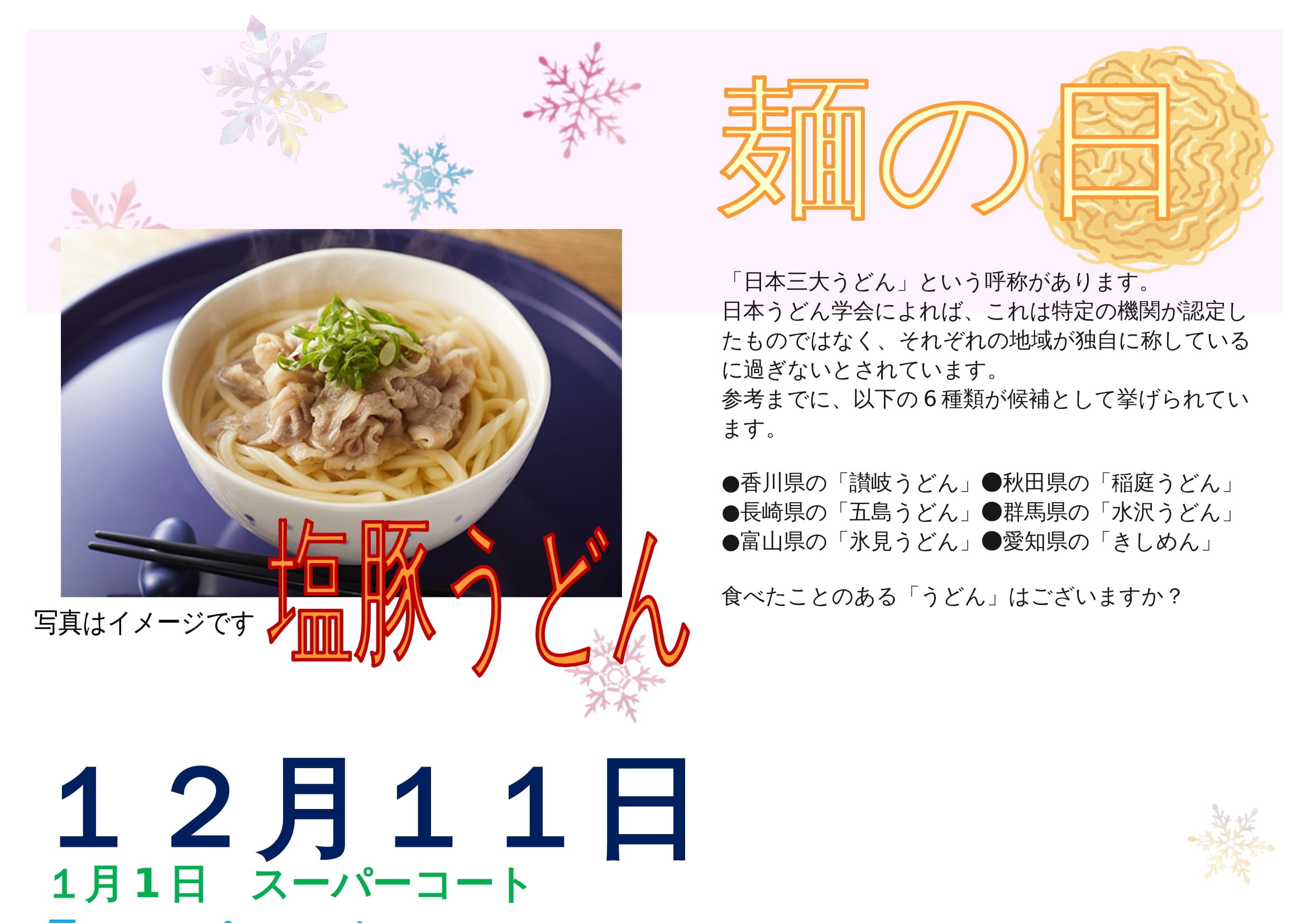 当施設で提供するうどんは、冷凍麺を使用しているためツルツルで適度なコシがあって美味しいですよ!