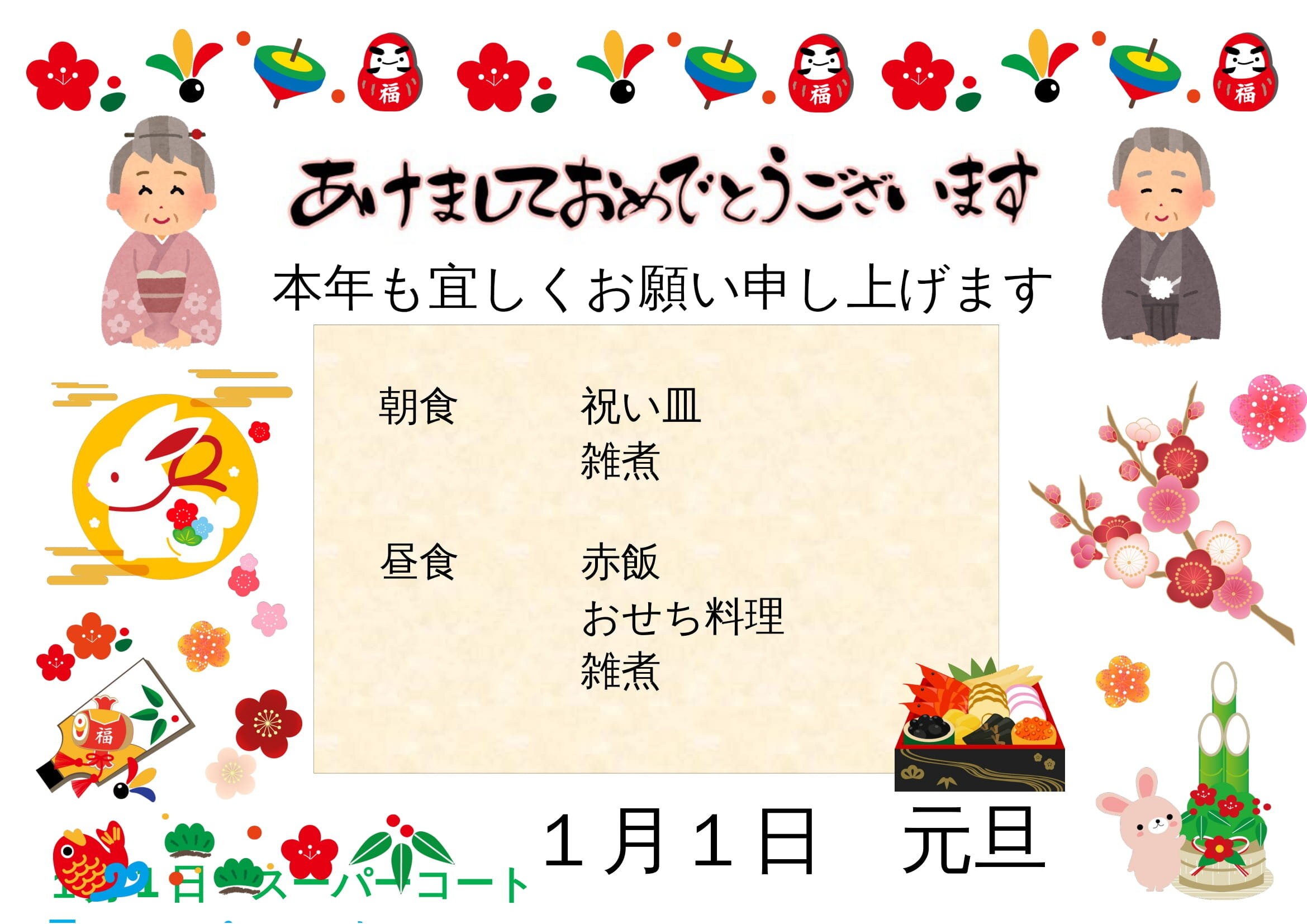 おせち料理などは、後日『お正月レク』としてブログ更新いたしますので、