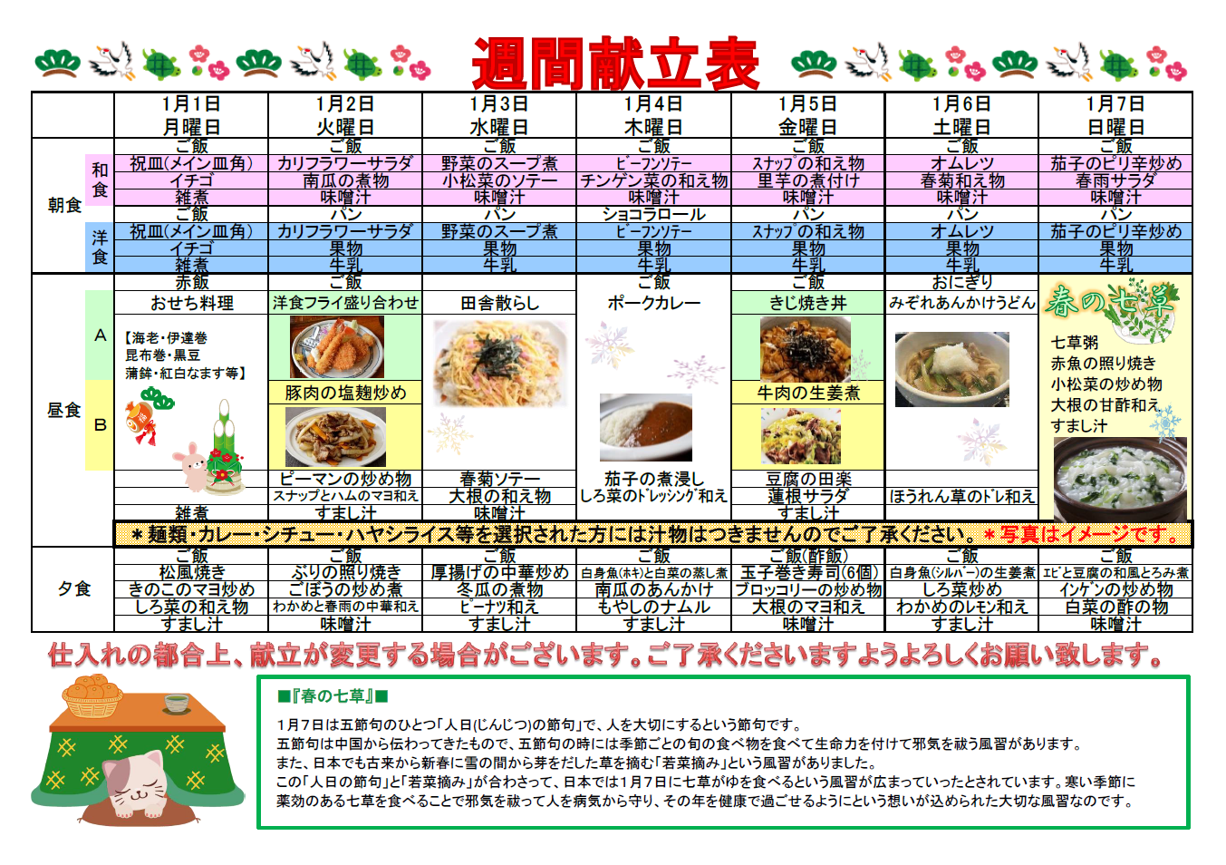初ブログは本日から開始の献立表を公開いたします~(*ᴗˬᴗ)⁾⁾