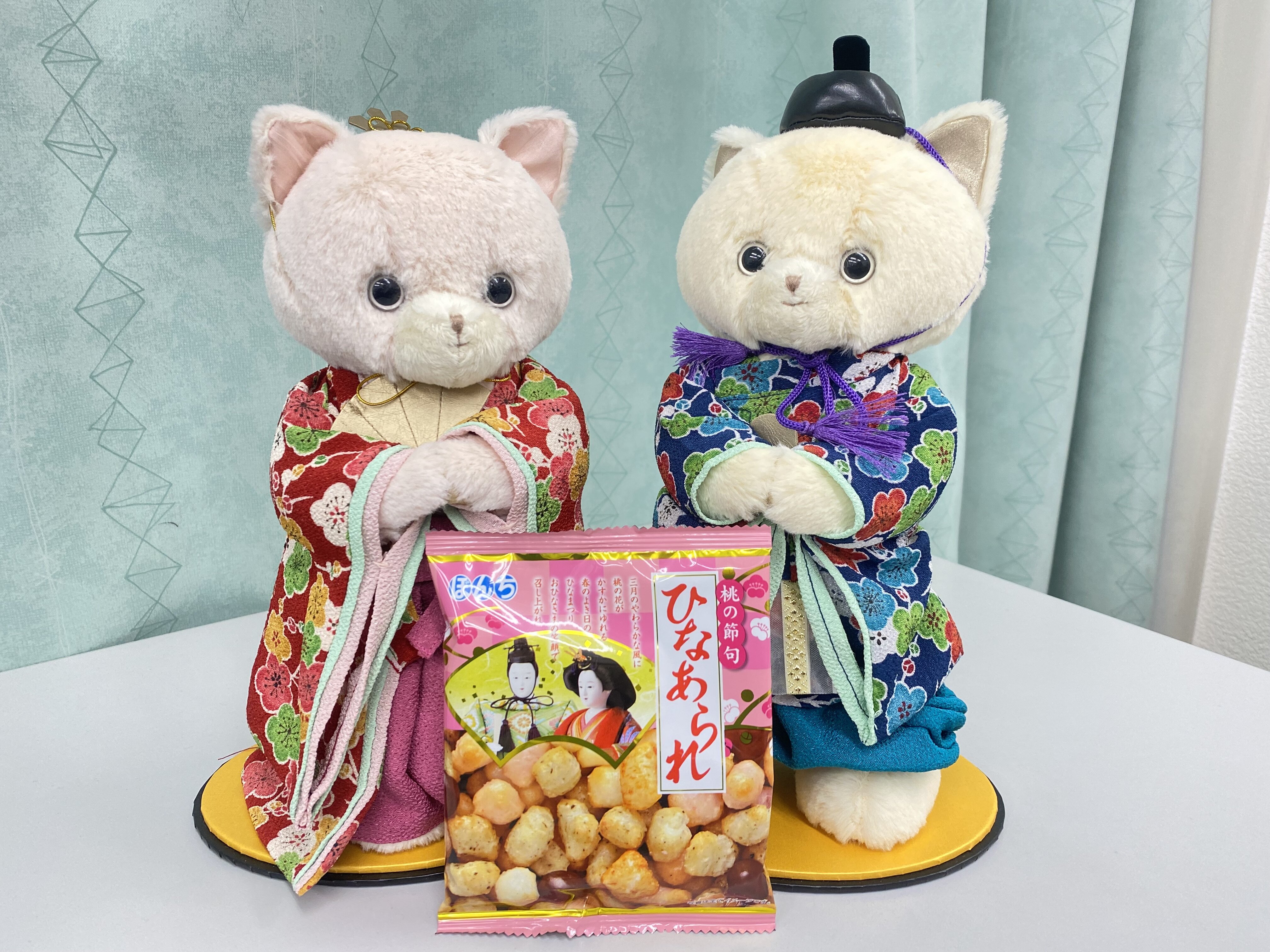 今年新たに可愛い猫ちゃんの立ち雛を発見したので、ご入居者のみなさんもなでなでが出来るこの子達を迎え入れました♪