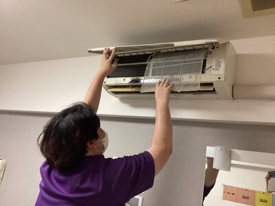 夏に入る前に全てのエアコンの清掃を行っています(^^)v