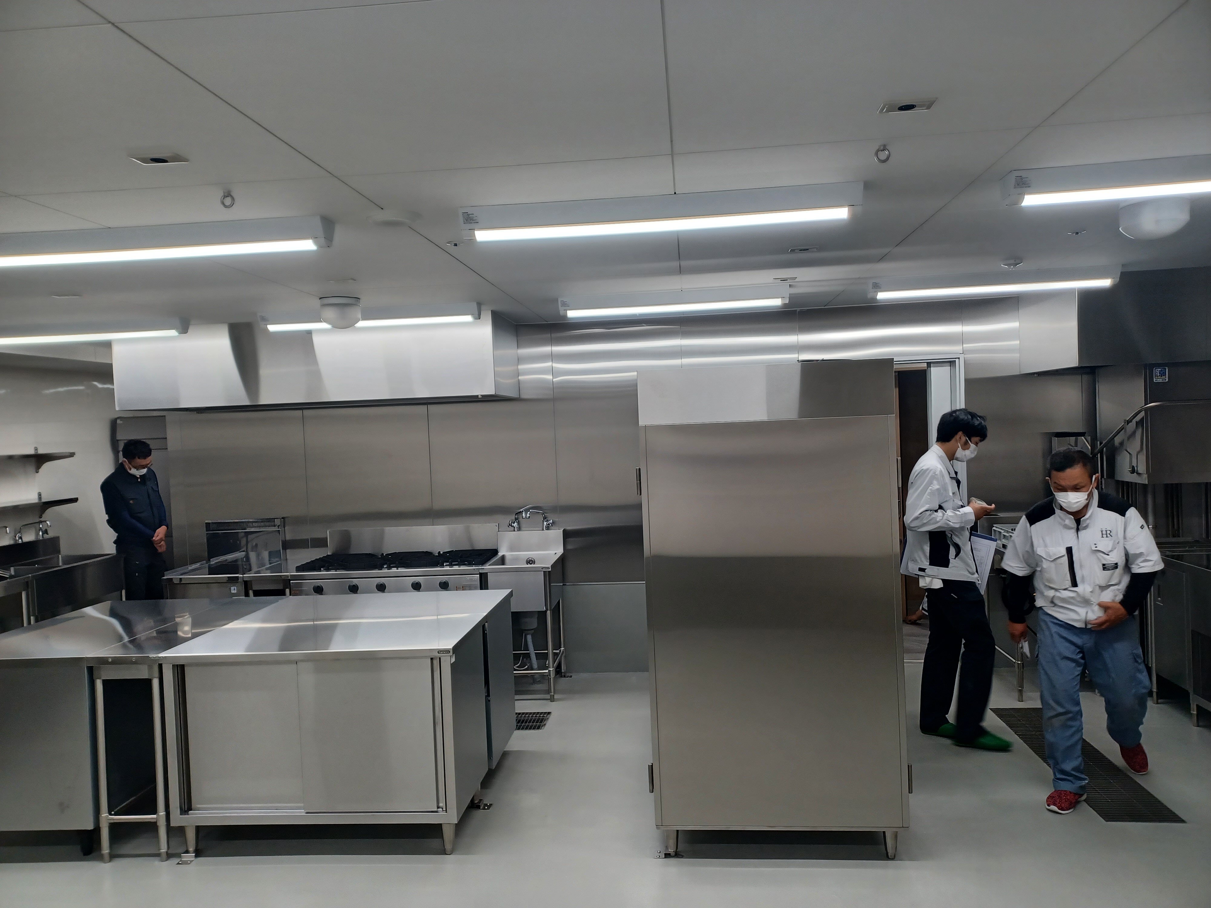 新棟の設備の一部をご紹介いたします。まずは厨房。すごく綺麗になりました!