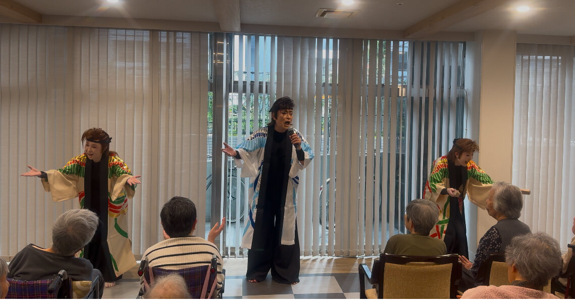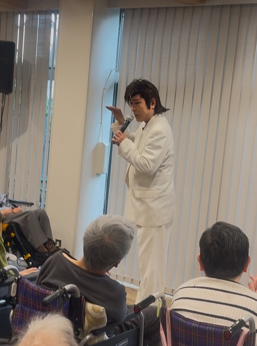 座長の歌声『高原列車』で観客のご入居者様の大合唱もピークに!