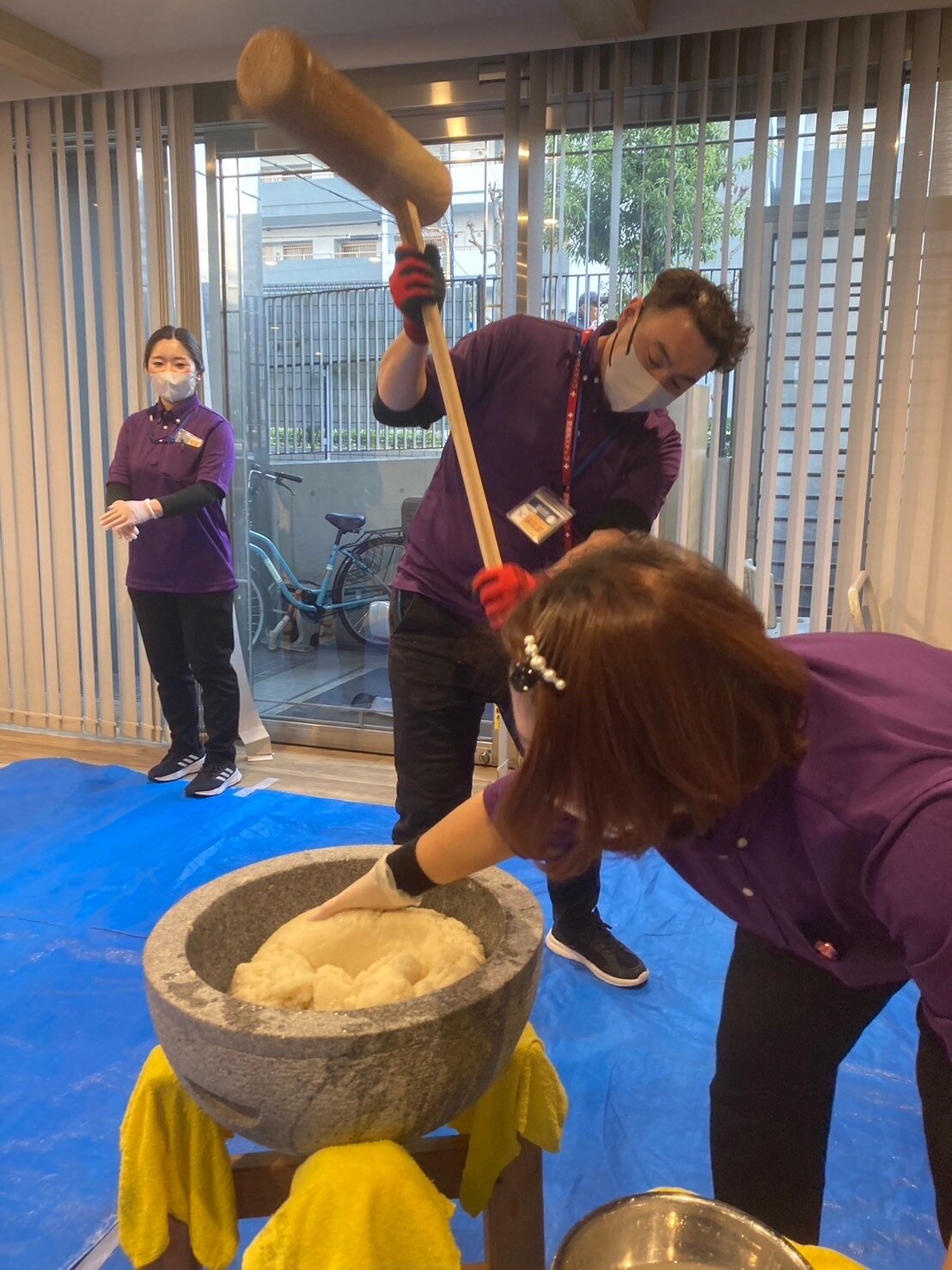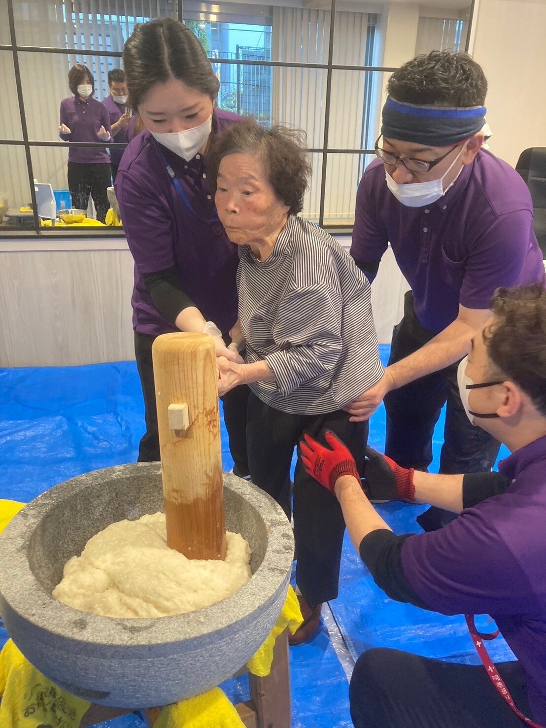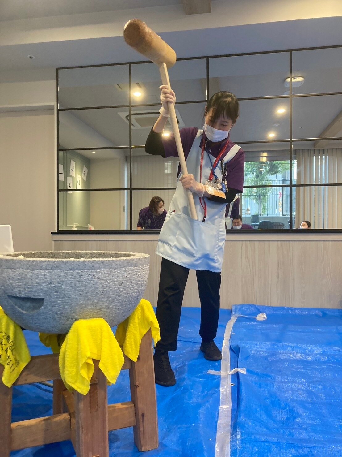 な、なんと!数名のご入居者も「私だって!」とつき手に名乗りを挙げ職員のサポートのもとしっかりと良い餅に仕上げてくれました~(人 •͈ᴗ•͈)