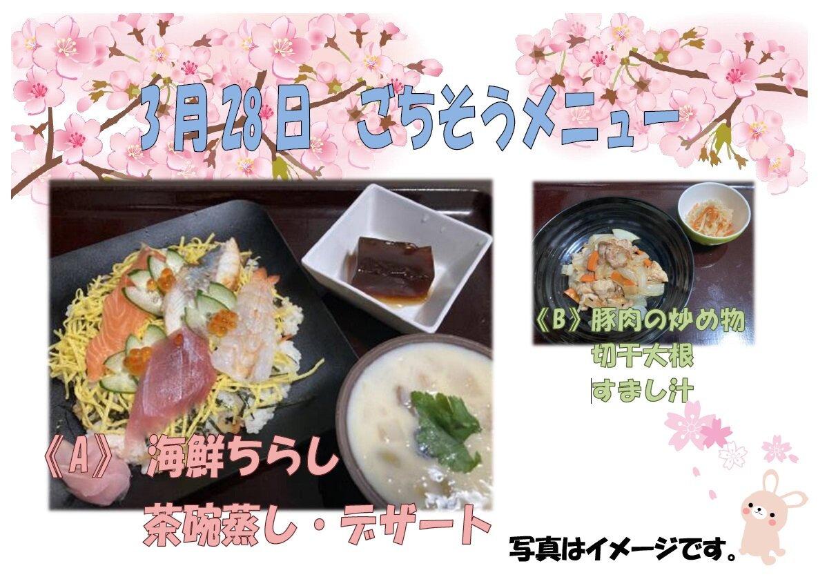 28日にはAを選んでいただくと海鮮ちらしが食べられます。