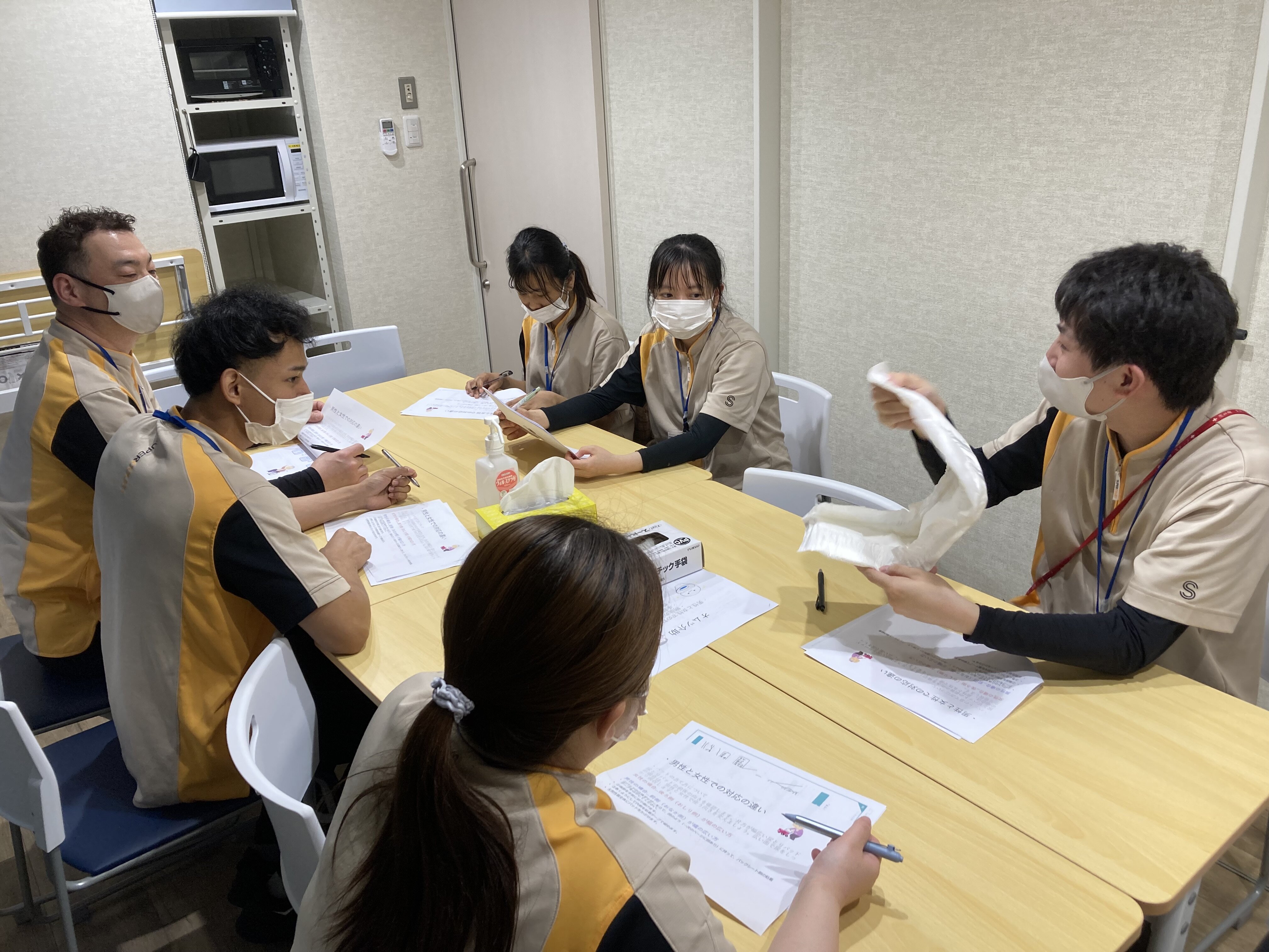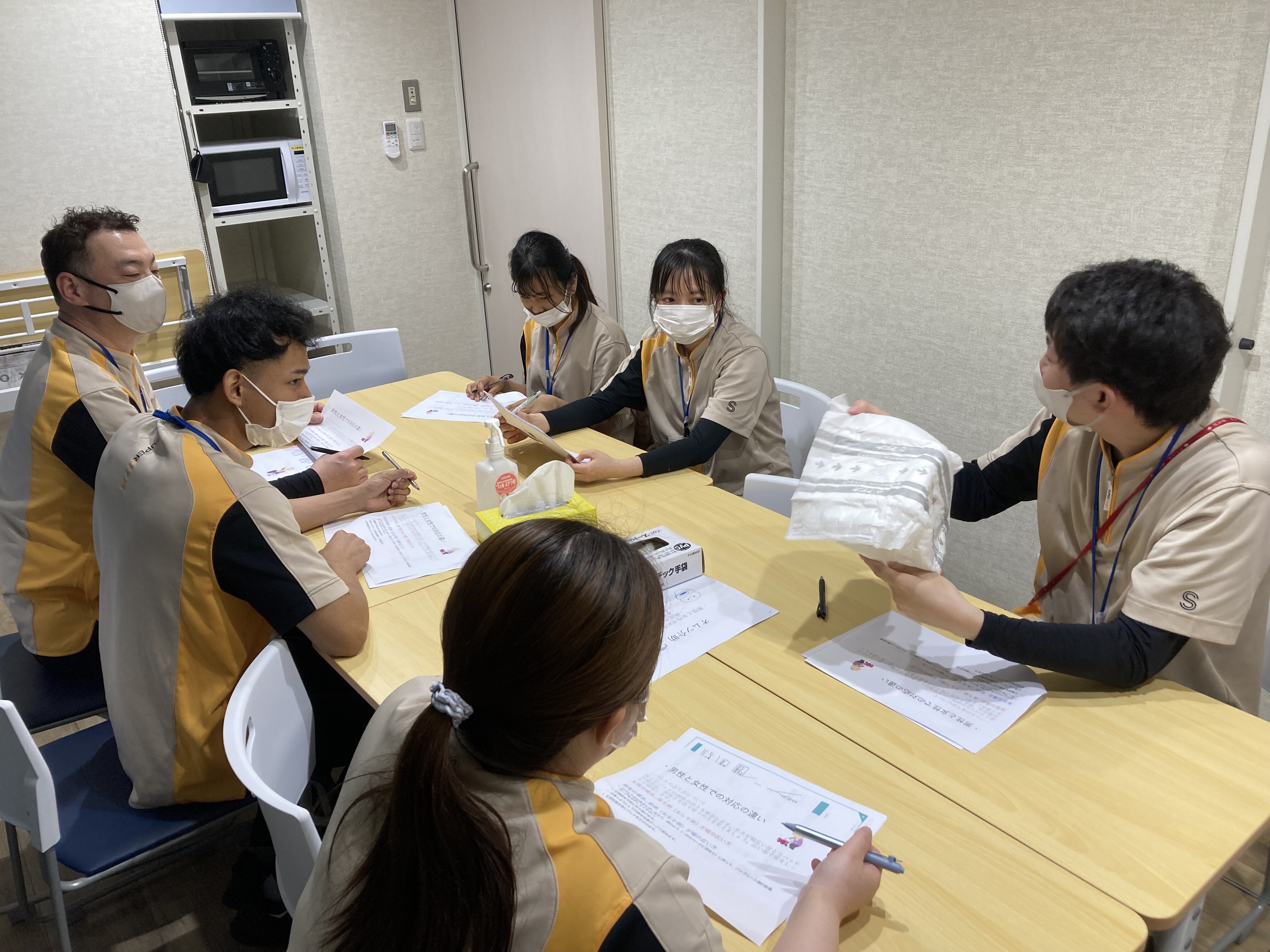 全職員が同じ対応ができるよう毎月テーマを変えて勉強会を開催しております。\( 'ω')/