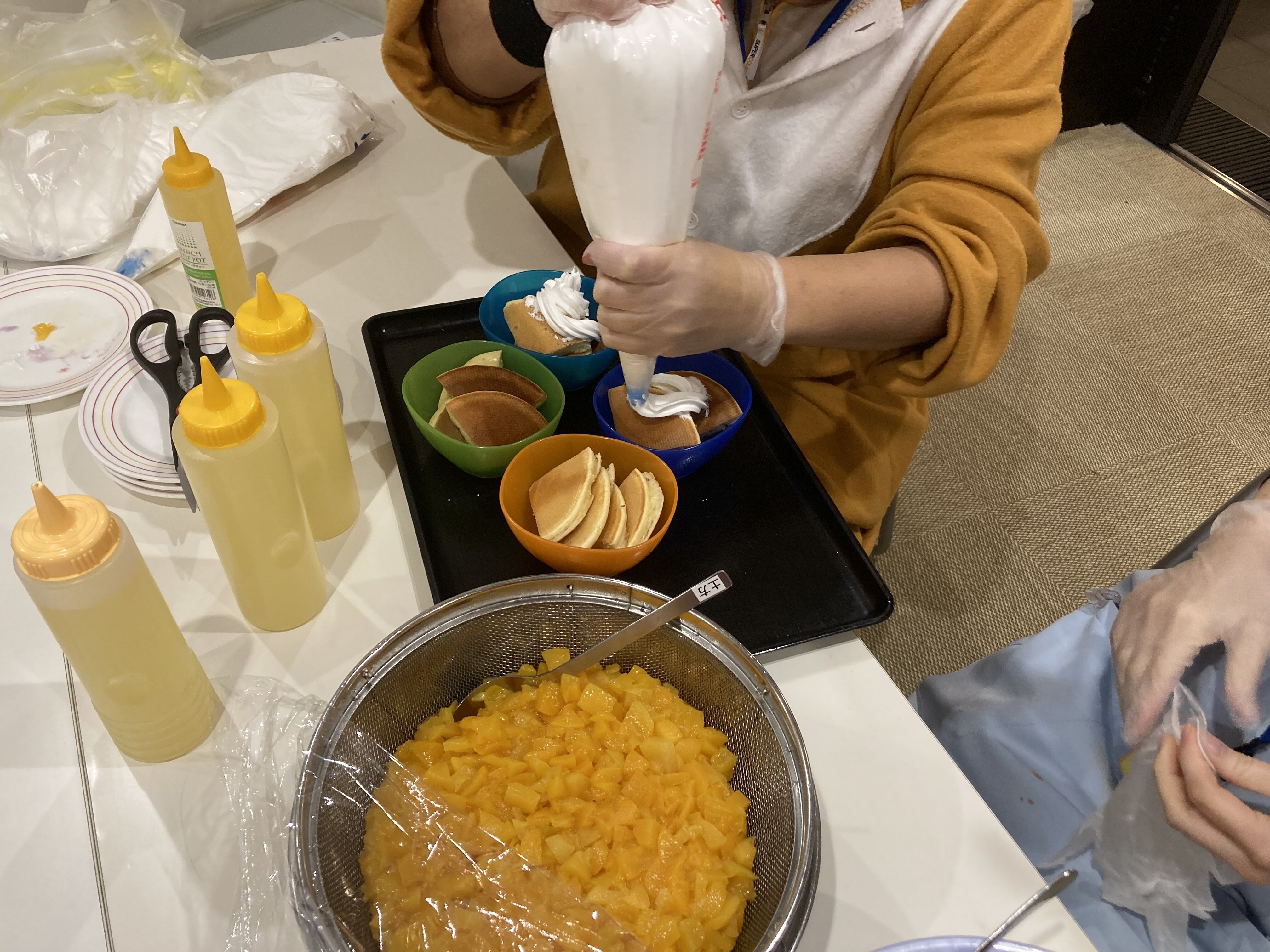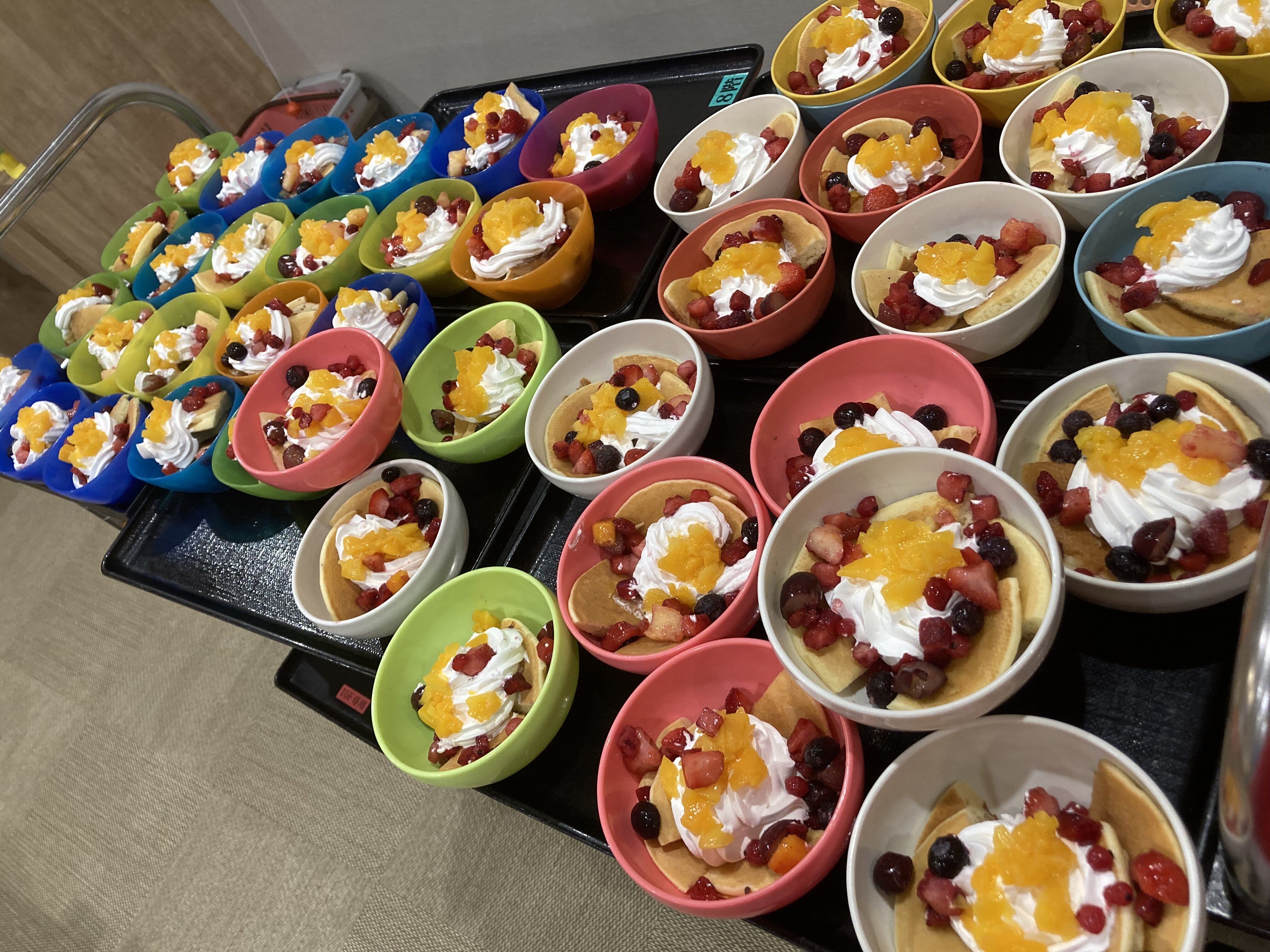 たくさん焼けたら、次は一口大にカットしトッピングをしていきます(≧▽≦)
