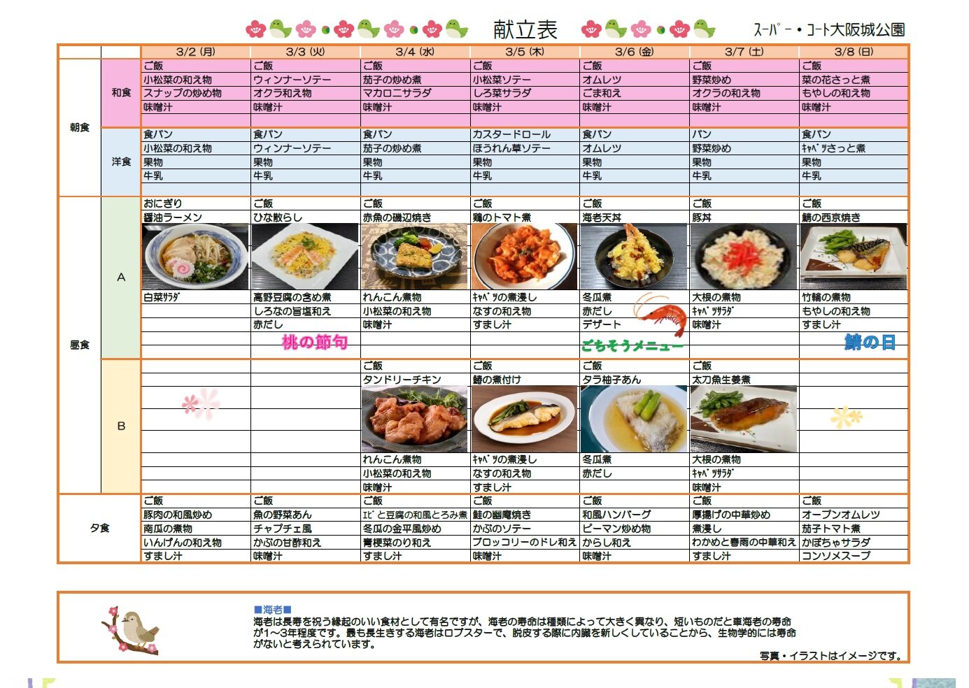 それでは、来週の献立を公開いたします。