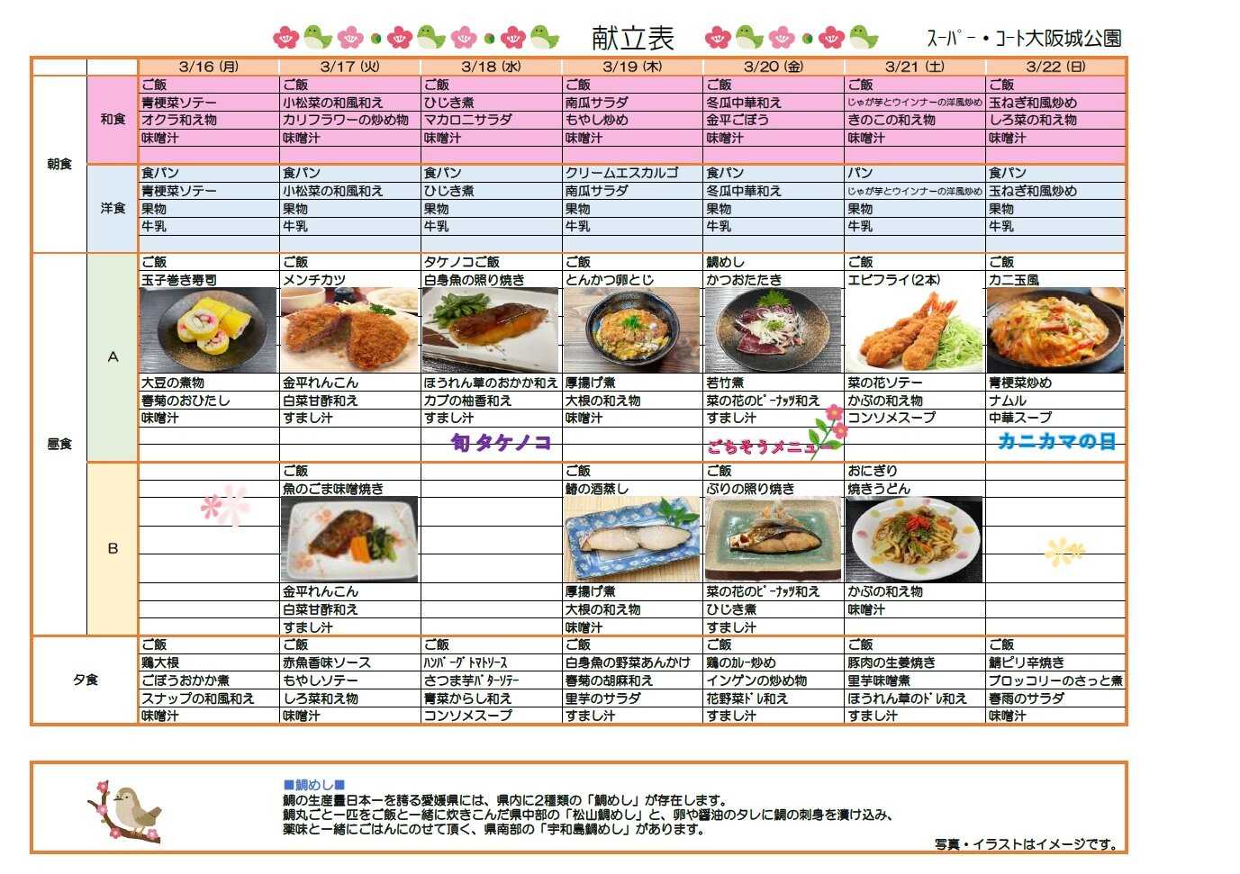 それでは、来週の献立表を公開いたします。