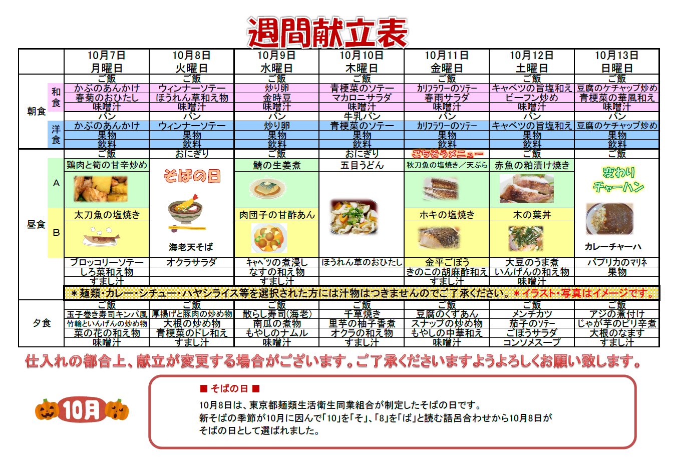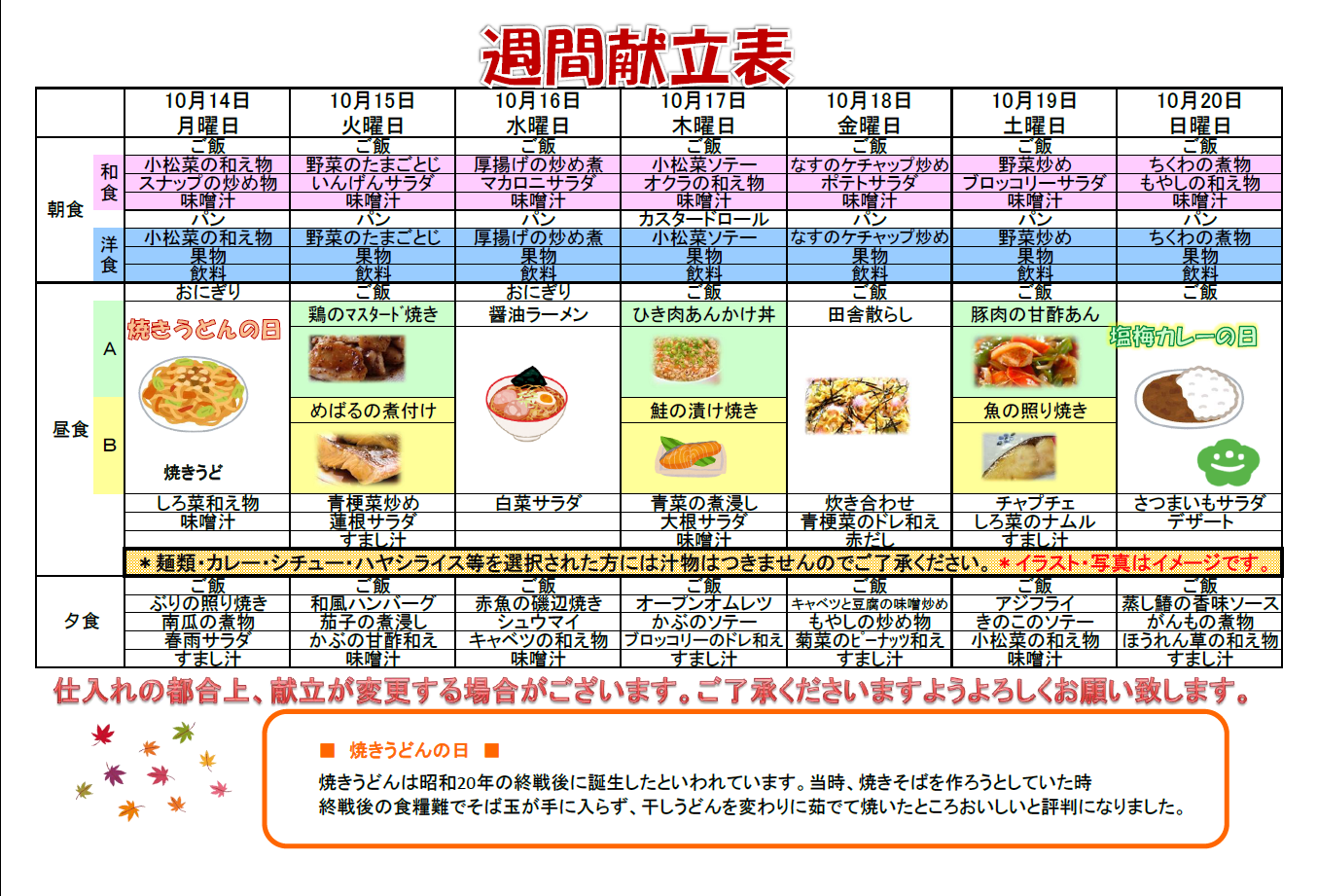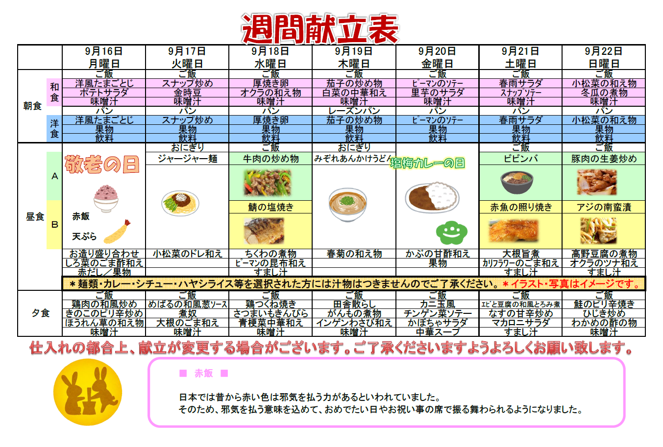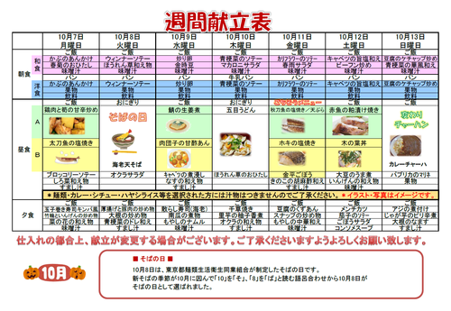 では、来週の献立を公開いたします。