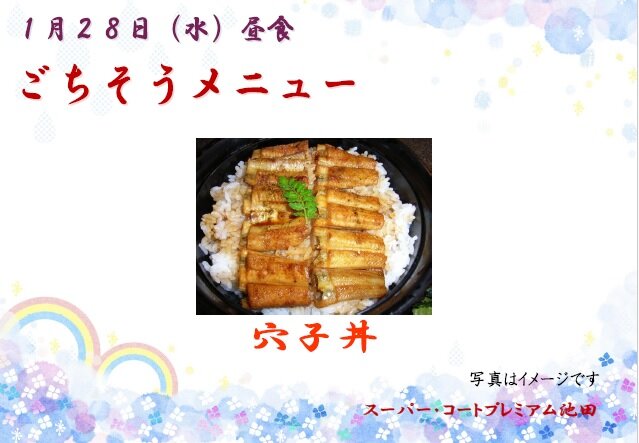 今回は1月のごちそうメニュー、穴子丼をご紹介♪