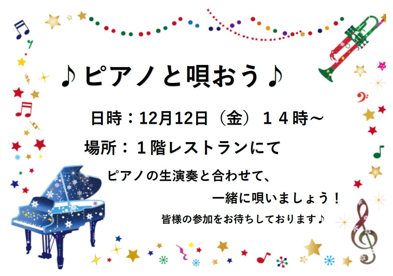 こちらも毎月開催中のピアノと唄おうです(*´ω`*)