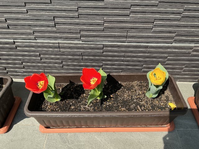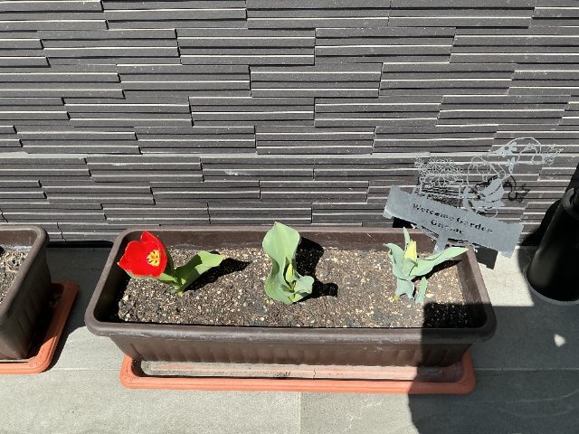 冬に球根を植えてから、蕾が見えるようになり・・・