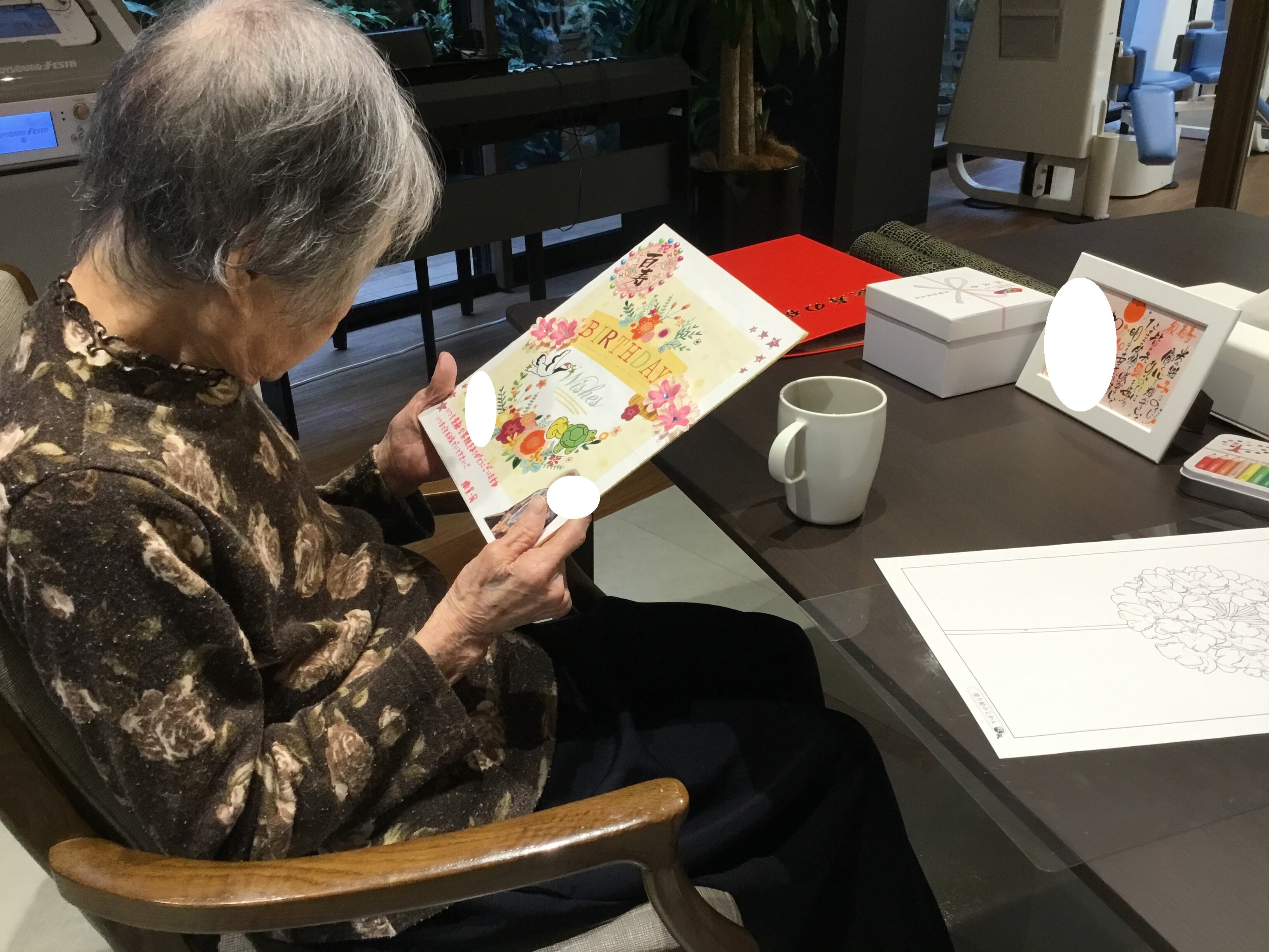 職員からの色紙をじっと眺めていらっしゃいました♡