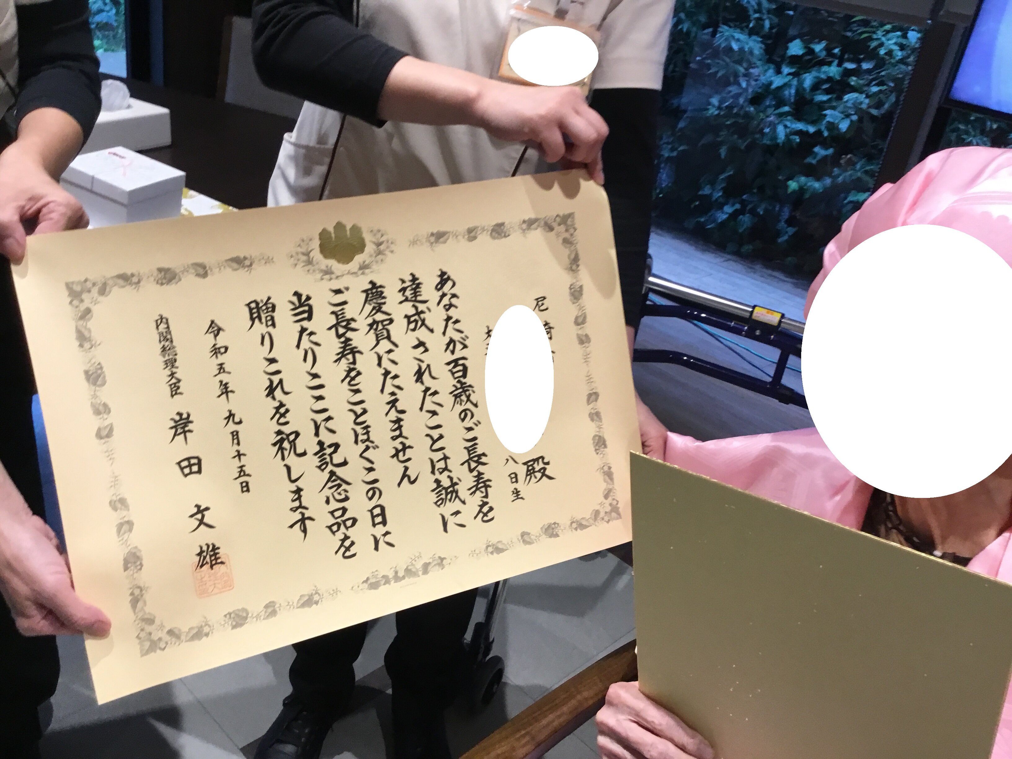 な、なんと!百寿には内閣総理大臣から賞状が届くんですねっ(*´▽`*)!!