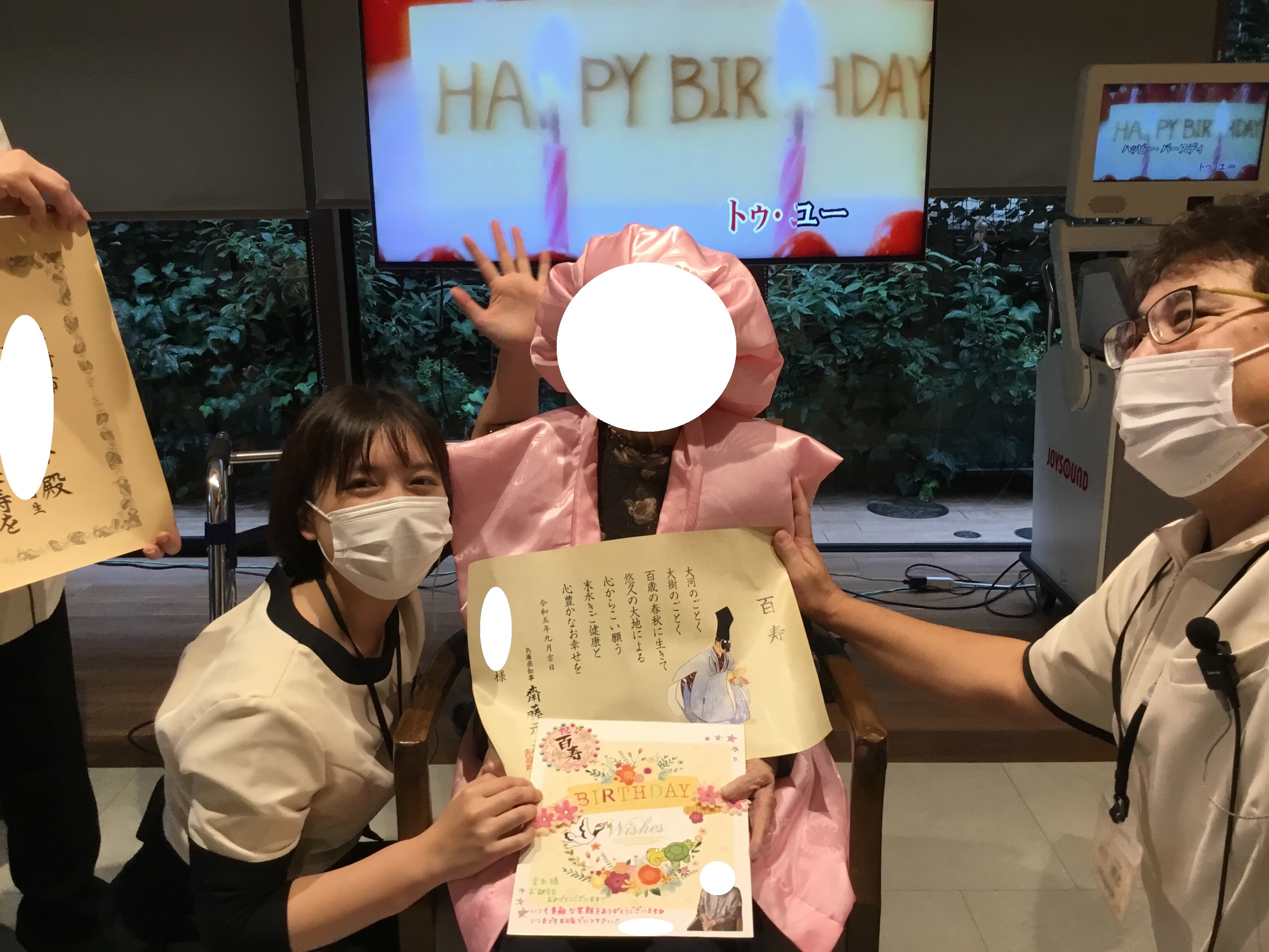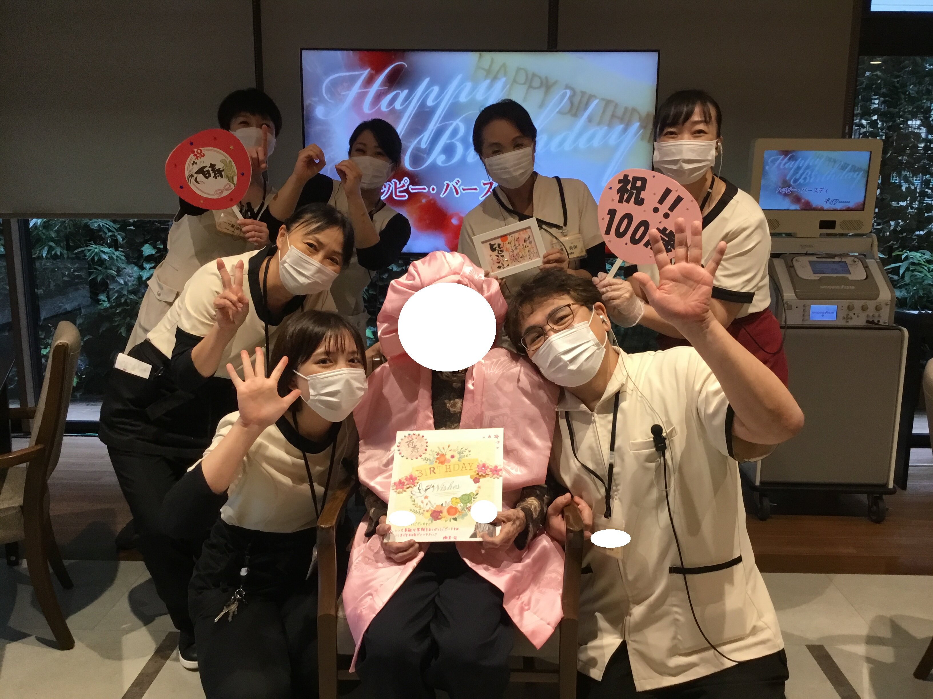 こちらのご入居者は女性で百寿のお誕生日をお迎えになりました(*^▽^*)