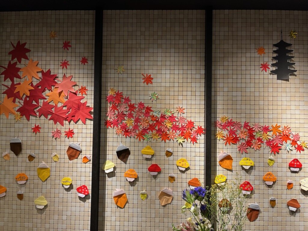 紅葉もたくさん作成できたので、実際にエレベーター前に貼ってみると・・・・・・