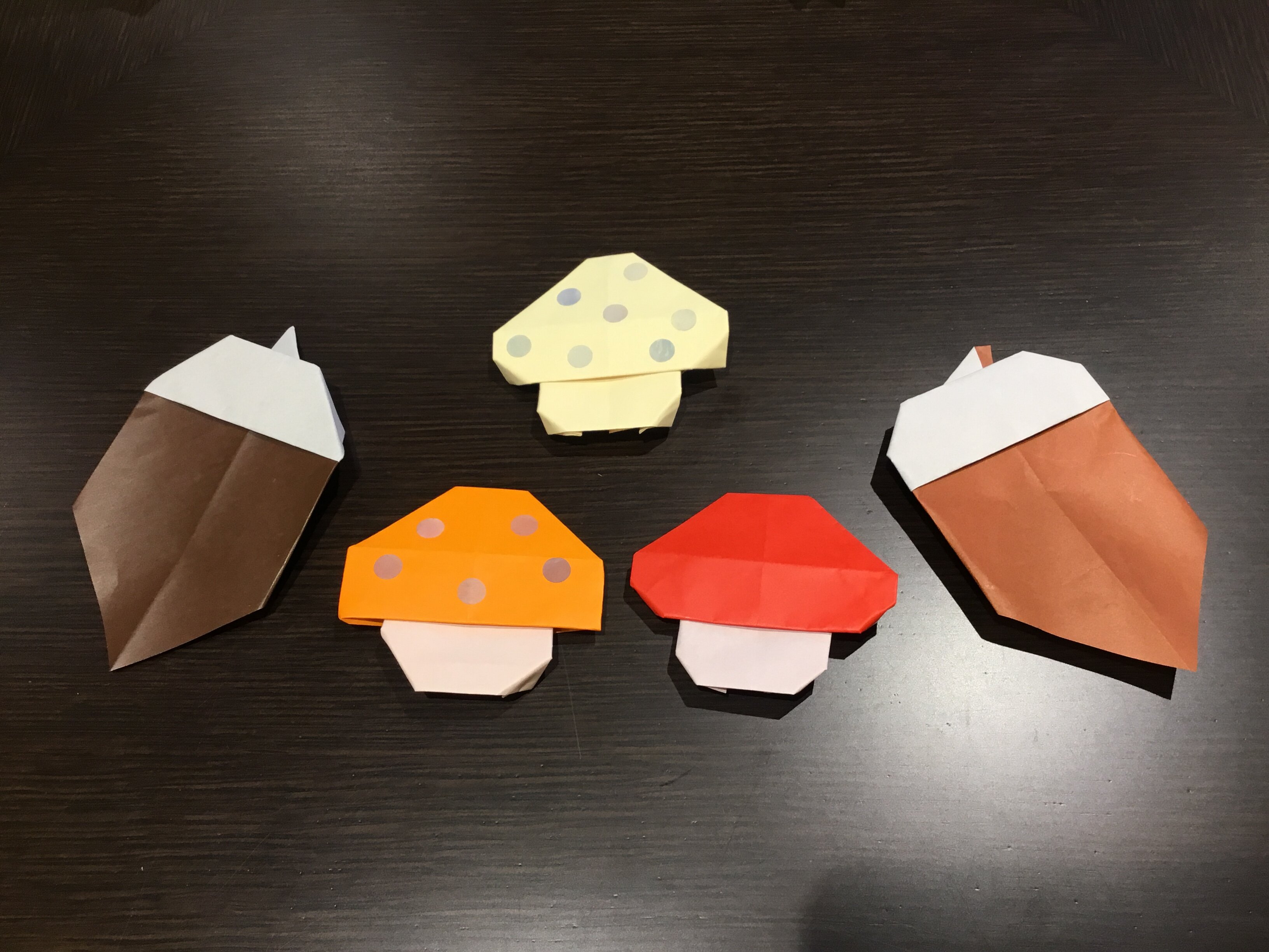 キノコとどんぐりを折り紙で作ります☆