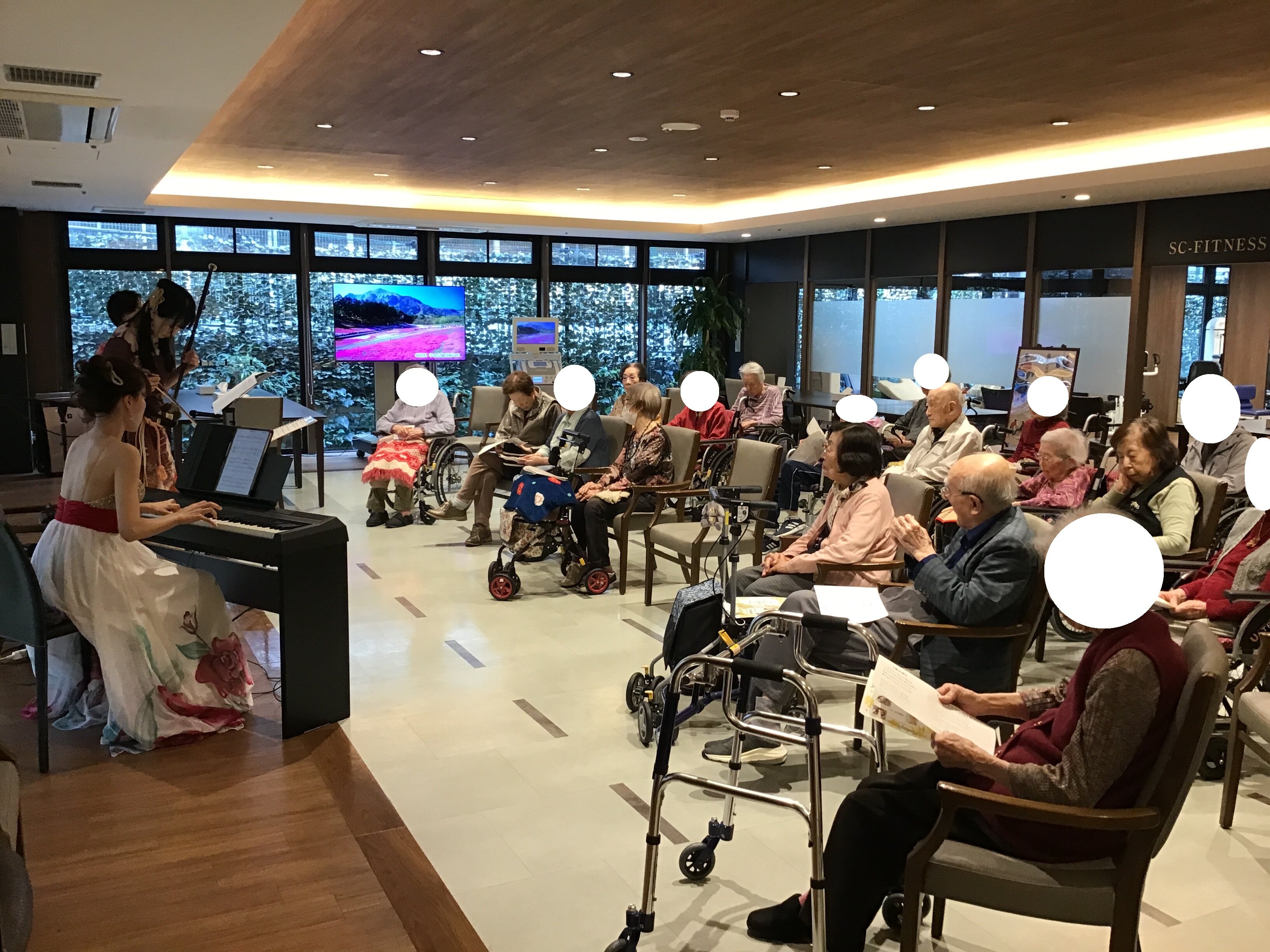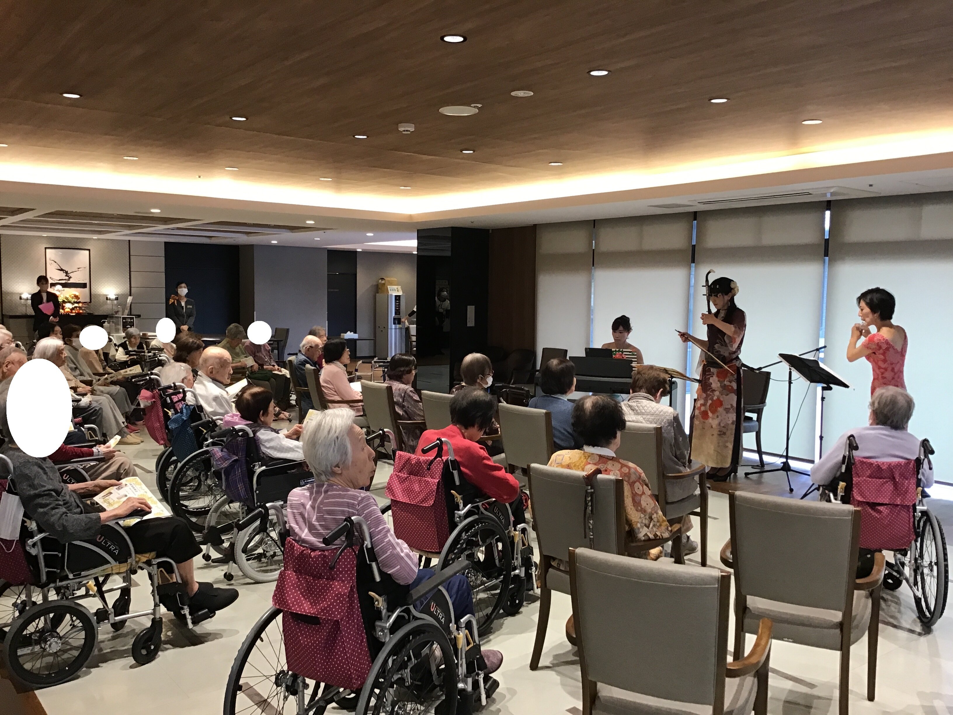 ご入居者の皆様からとても好評なイベントの一つで、特に楽器の演奏をしている皆様は、
