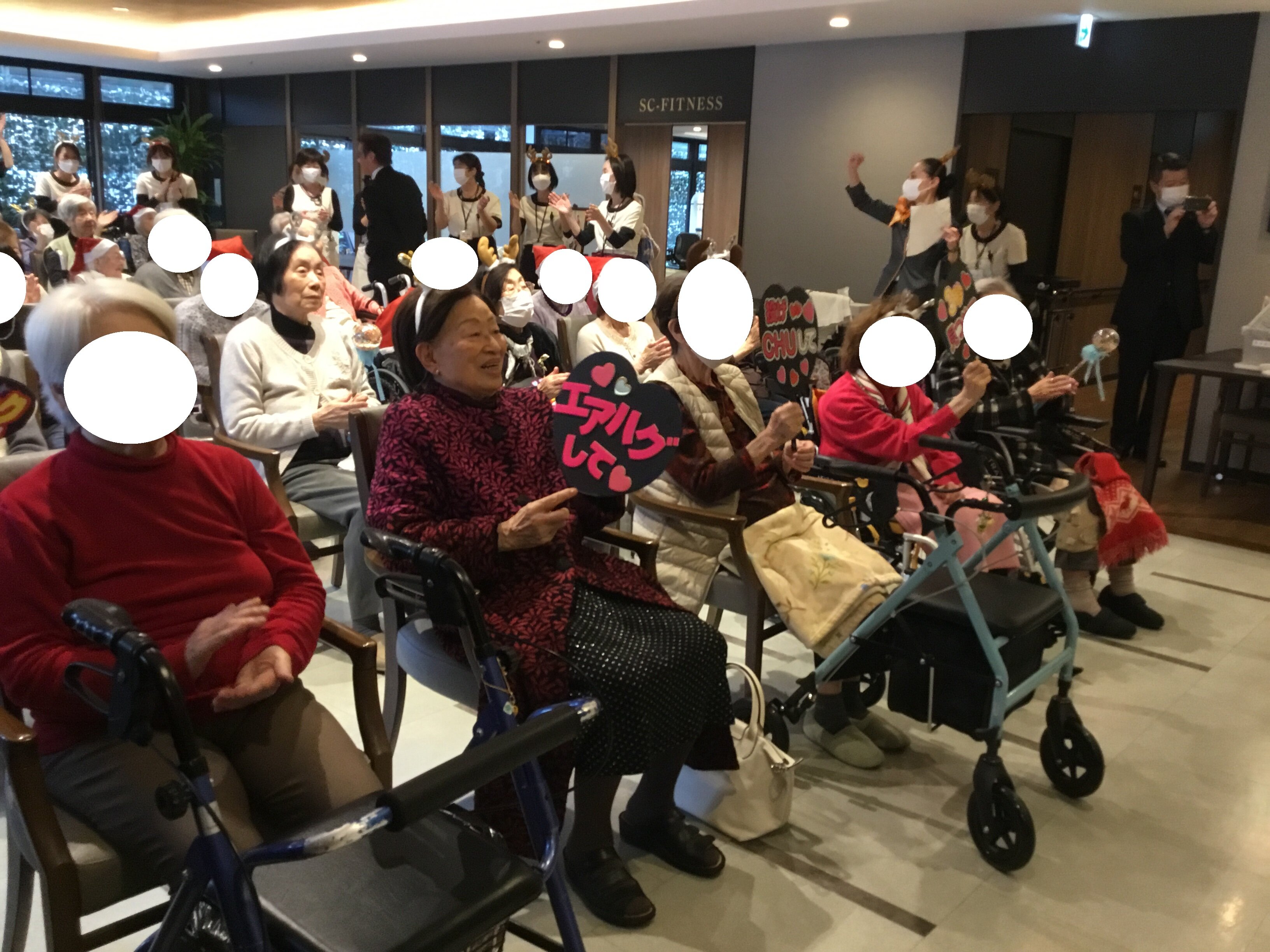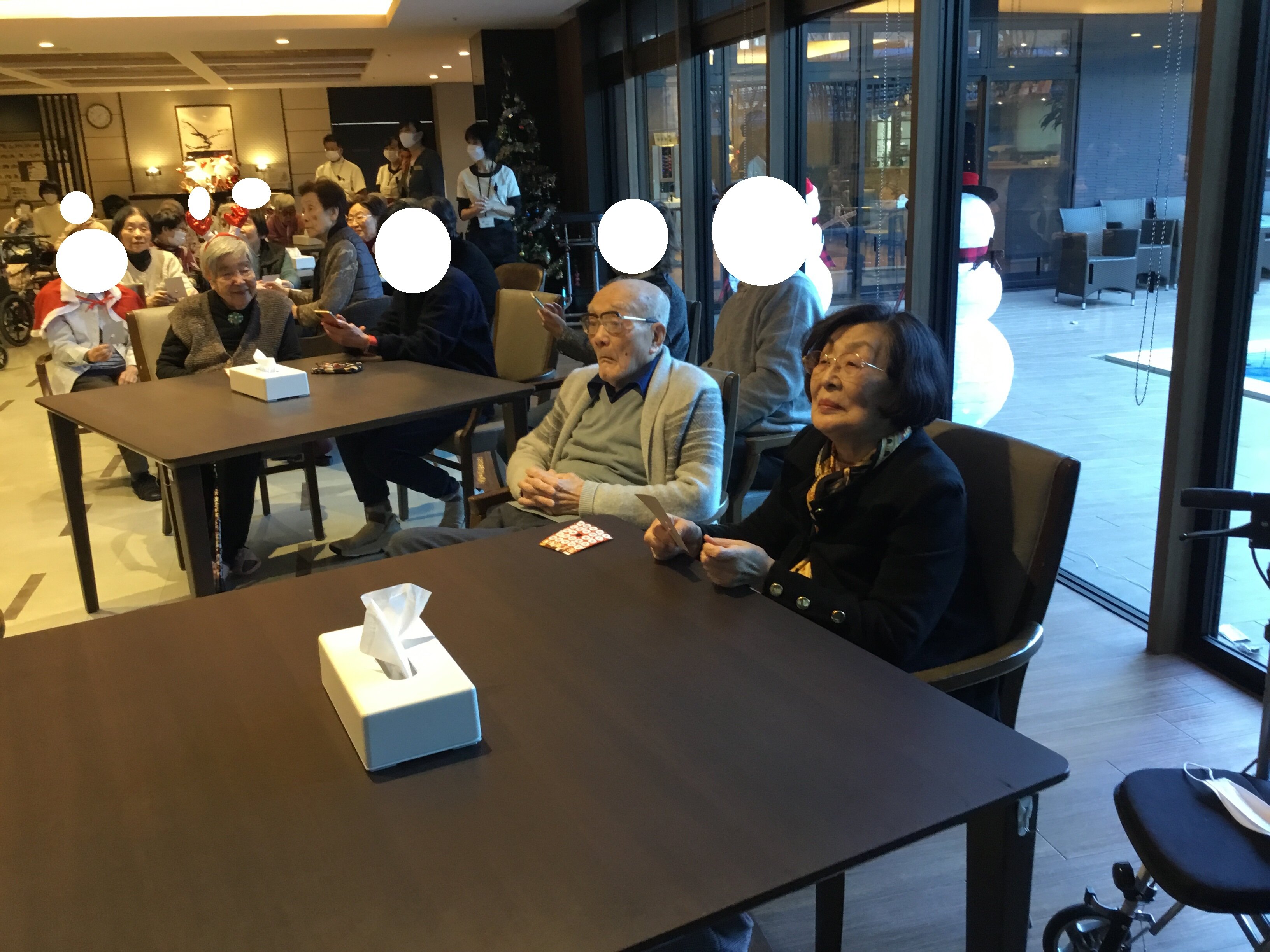 吹奏楽団の皆様に負けず劣らずの人数のご入居者の方々に